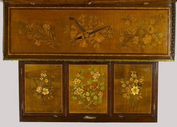 | Keywords: Maurice-Bernard Evalde - Lady's Desk - Walters 6560 - Top View B.jpg This desk bears the stamp of Evalde who became a master ébéniste or maker of inlaid furniture in 1765 He was responsible for the now lost jewel cabinet that King Louis XV of France presented to Marie-Antoinette on the occasion of her marriage to the future Louis XVI in 1770 The key to this desk bears the crown of France indicating that the piece may have been made for a member of the royal family The doors are inlaid in colored marquetry wood inlay Among the images found on the surface are a writing table and navigational instruments The desk's front drawer opens to reveal an inlaid writing surface which slides back to reveal compartments below ca 1770 oak marquetry in naturally colored and stained woods and gilded bronze cm 120 67 ; With drawers open cm 104 14 67 95 65 41 accession number 65 60 9586 La Comtesse Henri du Chastel de la Howarderie Belgium Sale Christies London December 4 1969 lot no 108 Ronald A Lee 1-9 Bruton Place London as agent Walters Art Museum 1969 by purchase Museum purchase in memory of Philip B Perlman 1969 place of origin Paris France Walters Art Museum license Maurice-Bernard Evalde Media contributed by the Walters Art Museum needs category review Furniture in the Walters Art Museum |