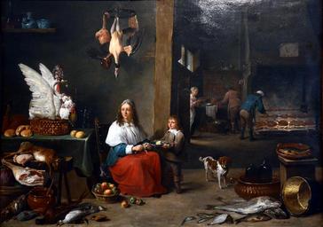 Keywords: Mauritshuis David Teniers II Kitchen Interior 14022016 2.jpg en Painting by David Teniers The Younger 1610 - 1690 Kitchen Interior 1644 Mauritshuis 2016-02-14 14 01 10 own Vassil other versions cc-zero Kitchen interiors by David Teniers the Younger 1644 Flemish paintings in the Mauritshuis People in kitchens in art Cooking in art Cuisine of the Netherlands in art Roast poultry Redressed birds People with food in art Baroque paintings of women Paintings of boys Child labour in art Swans in painting Swan dishes People with dogs in art 17th-century paintings of dogs Dead birds in art Dead animals in art 1644 paintings Dead swans in art 1640s paintings in the Netherlands 17th-century oil paintings in the Netherlands Kitchen interiors in Flemish genre paintings Swans in 17th-century art Swans in art of the Netherlands