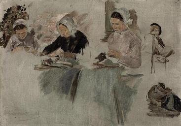| Keywords: Max Liebermann - Brabanter Spitzenklöpplerinnen (Studie).jpg Artwork Creator Max Liebermann 1881 oil canvas cardboard cm 24 4 34 3 object history Max Liebermann Berlin until at least 1929; - Galerie Thannhauser Berlin no 3783 ; - Dr Mrs Walter Buchler Braunschweig by whom acquired from the above in May 1935 and thence by descent exhibition history Berlin Königliche Akademie der Künste Max Liebermann 70 Geburtstag July - August 1917 no 57 <br/>Zürich Kunsthaus Max Liebermann June - July 1923 no 18 <br/> possibly Hamburg Kunstverein Max Liebermann November - December 1926 no 8 <br/>Vienna Künstlerhaus 50 Jahresausstellung der Genossenschaft der Bildenden Künstler Wiens mit Ausstellung Max Liebermann March - May 1929 no 108 <br/>Hanover Landesgalerie Max Liebermann 1847-1935 1954 n n ; this exhibition later travelled to Bremen Kunsthalle no 22 credit line 'MLiebermann 81' ~ lower left signature and date accession number christies online 5334012 PD-old-auto-1923 1935 1880s paintings by Max Liebermann |