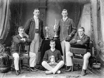 | Keywords: five men trophy 1906 group portrait boat club waterford boat club waterfordboatclub may 1900s a.h. poole ahpoole arthur henri poole arthurhenripoole poole collection poolecollection glass negative glassnegative pots austin farrell austinfarrell people identified peopleidentified friday 18th 20th century 20thcentury ireland w.b.c. wbc pierce challenge piercechallenge waterford national library of ireland nationallibraryofireland monochrome groupshot people blackandwhite black and white 5 members of Waterford Boat Club, with their awards. The gentleman seated on the left has been identified by Brendan J. Grogan as his great uncle, Austin Farrell, 1872-1934. Austin Farrell appears also as cox in another Waterford Boat Club photo (circa 1880s?), and in this Waterford Chamber of Commerce photo from May 1930. Date: Friday, 18 May 1906 NLI Ref.: P_WP_1544a 5 members of Waterford Boat Club, with their awards. The gentleman seated on the left has been identified by Brendan J. Grogan as his great uncle, Austin Farrell, 1872-1934. Austin Farrell appears also as cox in another Waterford Boat Club photo (circa 1880s?), and in this Waterford Chamber of Commerce photo from May 1930. Date: Friday, 18 May 1906 NLI Ref.: P_WP_1544a |