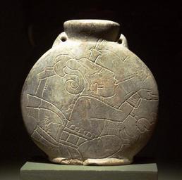 | Keywords: Maya bottle with incised figure of a young lord DMA 2006-59.jpg Bottle with incised figures of a young lord; Maya culture Mexico c A D 600-900; 7 9 x 7 9 x 3 2 cm; Ceramic <br />Dallas Museum of Art Dallas Texas; gift of John Lunsford 2006 59 own 2009-10 Photo User FA2010 Pre-Columbian art in the Dallas Museum of Art Maya ceramics |