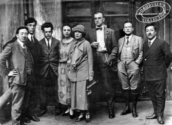 | Keywords: Mayakovsky Pasternak.jpg ru Б Пасте нак Л Б ик В аяковский С Эйзенштейн -- Д угая ве сия подписи Слева нап аво Тамизи айто Пасте нак Эйзенштейн Ольга Т етьякова Лиля Б ик аяковский А сений Вознесенский советский дипломат и пе еводчик с японского en Pasternak second from left with friends including Lilya Brik Eisenstein third from left and Mayakovsky centre On the left Japanese writer Tomizi Tamiji Naito 1885-1965 Moscow 11 May 1924 Borodulin's collection фото А Семенка 11 мая 1924 года / 11 May 1924 PD-old Vladimir Mayakovsky in photographs Boris Pasternak Lilya Brik Sergei Eisenstein Black and white photographs of groups Writers from Japan Black and white photographs |