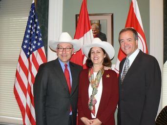 | Keywords: Mayor Dave Bronconnier, Ambassador David Jacobson, Julie Jacobson.jpg from U S Mission in Canada Ambassador Jacobson visits Alberta for the first time Two weeks into his tenure as U S Ambassador to Canada David Jacobson visited Alberta to meet with government business academic and community leaders students and media In Calgary the Ambassador and his wife Julie were welcomed to the city by Mayor Dave Bronconnier with a traditional white-hat ceremony Ambassador Jacobson also participated in a business roundtable organized by the Calgary Economic Development Authority spent time talking to students at the University of Calgary and attended a dinner hosted by the University of Alberta -Calgary Centre The following day he toured the Alberta oil sands accompanied by industry representatives and provincial government officials to learn more about operations there and related environmental issues as well as the steps being taken to address them His tour included a meeting with Chief Jim Boucher of the Fort McKay First Nation to learn more about the concerns of aboriginal people in the region The Ambassador ™s first trip to Alberta also included a stop in Red Deer to have coffee with local government representatives and community leaders and speak to media 2009-10-12 http //www flickr com/photos/us_mission_canada/4112323869/in/photostream/ U S Consulate General Calgary Alberta Canada - Department of State US Mission Canada http //flickr com/photos/38144472 N04/4112323869 2012-03-11 22 50 56 cc-by-2 0 PD-USGov Uploaded with UploadWizard Dave Bronconnier David Jacobson Calgary |