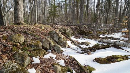 | Keywords: mazinaw tramway gilmour lumber gilmourlumber gilmour logging gilmourlogging vintage railway 1850s lumber logging pringle lake pringlelake mazinaw lake mazinawlake horse carriage horsecarriage white pine engineering outdoor landscape water stream This view of the Mazinaw Tramway was recorded from the South Mazinaw Height Road. N44,487, W77 11.543 Of the many lumber firms that operated in the Cloyne area in the mid to late 1800s, the Gilmour Lumber Company was prominent. Based in Trenton, Ontario at the outlet of the Moira River, the large Gilmour mill had a voracious appetite for logs. In 1888 it was reputed that the Trenton mill had perhaps the largest cutting capacity in the world although it never had run at full capacity. This need for lumber necessitated the firm’s purchase of timber rights in the Algonquin area and to a lesser extent around the current Bon Echo Park area in an effort to keep feeding the mammoth mill. In the case of Bon Echo, Gilmour constructed a magnificent rail system that enabled the company to traverse two water systems- the Mississippi in the East on Mazinaw Lake to Pringle Lake on the West, a tributary of the Moira River running south to his huge mill in Trenton. This was an engineering marvel of its time, a way Gilmour could sell Mazinaw white pine and transport it by a completely different water system. The embankment that held the railway can still be seen today as it travels through the forest between Mazinaw and Pringle Lakes (on predominantly private land) in an amazingly straight line - a direction of 240 degrees SW. An embankment of earth and stone was built by hand to elevate the rails above the swamps in some areas nearly 2 metres high and 2 metres wide. Most of the railway can be seen as a hump on both sides of the South Mazinaw Heights Road continuing across Highway #41 on its way to Pringle Lake. Pringle Lake is 43 metres higher than the Mazinaw and over 2 kilometres to the west. Starting at the Mazinaw, Gilmour devised a jack ladder - a steam powered hoist to lift the logs up the steep 70 metre embankment from the lake, a full 28 metres vertically. Then on a system of steel rails, horse drawn carriages transported the logs up another 25 metres vertically (an average grade of 2%) before descending 13 metres to Pringle Lake. The terrain was rough and swampy. The hoist was located on the Mazinaw to provide maximum lift in the minimum distance while also minimizing the uphill grade on the tramway line. Even though the Mazinaw tramway could move fewer logs per day than Gilmour’s much larger Dorest, Ontario tramway which could move an average of 2400 logs per day, the Mazinaw tramway had an advantage. It was not dependent upon water and therefore could operate more months per year. This seasonality was ultimately one of the main causes of failure for the Dorset operation and Gilmour Logging. The Mazinaw tramway was used as early as the 1850s and continued for about 40 years. Today the tramway is a hidden memorial to our lumbering era 150 years ago and a testament to the ingenuity of the engineers of the day. The above is sourced from the 'Addington Highlands - North Frontenac Historic CD Audio Driving Tour' available from the CDHS Bookstore: pioneer.mazinaw.on.ca/store.php Part of the Ken and Cathy Hook Collection Note: All CDHS Flickr content is available for the public use (non-commercial) providing our Rights Statement is followed: pioneer.mazinaw.on.ca/flickr_statement.php This view of the Mazinaw Tramway was recorded from the South Mazinaw Height Road. N44,487, W77 11.543 Of the many lumber firms that operated in the Cloyne area in the mid to late 1800s, the Gilmour Lumber Company was prominent. Based in Trenton, Ontario at the outlet of the Moira River, the large Gilmour mill had a voracious appetite for logs. In 1888 it was reputed that the Trenton mill had perhaps the largest cutting capacity in the world although it never had run at full capacity. This need for lumber necessitated the firm’s purchase of timber rights in the Algonquin area and to a lesser extent around the current Bon Echo Park area in an effort to keep feeding the mammoth mill. In the case of Bon Echo, Gilmour constructed a magnificent rail system that enabled the company to traverse two water systems- the Mississippi in the East on Mazinaw Lake to Pringle Lake on the West, a tributary of the Moira River running south to his huge mill in Trenton. This was an engineering marvel of its time, a way Gilmour could sell Mazinaw white pine and transport it by a completely different water system. The embankment that held the railway can still be seen today as it travels through the forest between Mazinaw and Pringle Lakes (on predominantly private land) in an amazingly straight line - a direction of 240 degrees SW. An embankment of earth and stone was built by hand to elevate the rails above the swamps in some areas nearly 2 metres high and 2 metres wide. Most of the railway can be seen as a hump on both sides of the South Mazinaw Heights Road continuing across Highway #41 on its way to Pringle Lake. Pringle Lake is 43 metres higher than the Mazinaw and over 2 kilometres to the west. Starting at the Mazinaw, Gilmour devised a jack ladder - a steam powered hoist to lift the logs up the steep 70 metre embankment from the lake, a full 28 metres vertically. Then on a system of steel rails, horse drawn carriages transported the logs up another 25 metres vertically (an average grade of 2%) before descending 13 metres to Pringle Lake. The terrain was rough and swampy. The hoist was located on the Mazinaw to provide maximum lift in the minimum distance while also minimizing the uphill grade on the tramway line. Even though the Mazinaw tramway could move fewer logs per day than Gilmour’s much larger Dorest, Ontario tramway which could move an average of 2400 logs per day, the Mazinaw tramway had an advantage. It was not dependent upon water and therefore could operate more 