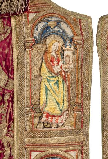 View Original:MCC-21485 Rode koorkap met verrijzenis op schild, aurifriezen met Bonifatius, Augustinus en Barbara (4).tif.tiff (3688x5430)