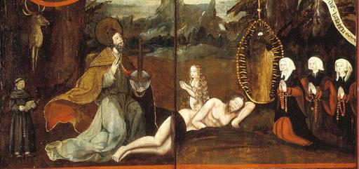 | Keywords: MCC-42054 Veelluik met het martelaarschap van de H. Theodosia (79).jpg Artwork nl Anonymous Gelre nl Middenstuk 1 Theodosia verzoekt toelating tot de gevangenis Rechtsboven een engel met banderol waarop de tekst Ghi sijt verhoert die geve die ghi do bidt heb ick gevestigt mit mijnen gelt die martelie te liden 2 Theodosia wordt bij de magistraat ter verantwoording geroepen Op het tekstbord Desen s alch sal ick mitter hulpen des heren voer s en 3 Theodosia ™s marteling aan de hefboom Op het tekstbord Ic ben bereyd dinc voer iezus christo te liden 4a Theodosia aan de schandpaal 4b Theodosia ™s ledematen worden uitgerekt 5 Allegorische voorstelling Christus aan het kruis met het offerlam op zijn schouders; onder het kruis negen schapen Op de voorgrond links een non rechts koning David met een gouden kroon op zijn hoofd en een herdersstaf met schep in beide handen die hij naar de non uitsteekt; tussen hen in ligt een harp Op het tekstbord suster hoede die scapen dier gedacten in die minne des brudegoms iesus opten berch caluarie 6a Theodosia uit het water gered door twee engelen 6b Vijf nonnen en een vrouw in wereldse kledij bezoeken Theodosia in de gevangenis Op het tekstbord min medes elen in cro Christo den enge w ech Het opschrift op de lijst onder de voorstelling is onleesbaar 7 Theodosia voor de wilde dieren geworpen Op het tekstbord nu suldi bekennen hoe vol si vermogen die god mit pueren herten minnen 8 Onthoofding van Theodosia Op het tekstbord dat ic inren tiit des vreden heb vercregen dat sal ic inden striit nie verliesen 9a Verschijning van Theodosia aan haar ouders Op het tekstbord sieh hoe soet die glorie ist daer du mi af beroeven wolste 9b Begrafenis van Theodosia Een zwevende engel met banderol waarop si heft nu salighe vrocht Aan weerszijden van deze taferelen zijn vrouwelijke heiligen afgebeeld steeds twee aan twee met tussen hen in een geknielde non Op de eerste voorstelling links in plaats van een vrouwelijke heilige Maria met kind Links 10a Madonna op de maansikkel en Fides Opschriften / fides 10b Caritas en Spes Opschriften niet leesbaar 11a Agatha en Dorothea Opschriften aghata / doratea 11b Apollonia met attribuut van Agatha tang waarin in plaats van een tand een borst is geklemd en Euphrosia Opschriften appolonia / effrosia 12a Anatolia en Christina Opschriften anatolia / 12b Victoria en Sophia Opschriften victoria / sophia Rechts 13a Margaretha en Gertrudis Opschriften a gretha / gertrudis 13b Ursula en Walburga Opschriften ursula / 14a Catharina en Barbara Opschriften katrina / barbara 14b Agnes en Prisca Opschriften agneta / priska 15a Cecilia en Cunera Opschriften cecilia / cunera 15b Lucia en Clara Opschriften lucia / clara Binnenzijde linkerluiken 16 Kruisdraging met Veronica en Simon van Cyrene 17 Doornenkroning Rechts een als priester geklede heilige met een kelk in de hand en een knielende non 18 Geseling Rechts een H Bisschop 19 Christus in de Hof van Olijven en de stigmatisatie van de Franciscus 20 Besnijdenis Rechts een reguliere kanunnik en een geknielde vrouw in 16de-eeuwse kledij met de attributen van de H Goedele een lantaarn geflankeerd door een engel met een brandende kaars en een duivel met een blaasbalg; daaronder het opschrift gudila 21 Ontkleding van Christus Rechts een heilige met een boek en een ladder 22 Kruisnageling Rechts de apostel Thomas 23 Christus aan het kruis met Maria Johannes en de drie vrouwen Rechts Antonius 24 Bewening Rechts de apostel Paulus en twee geknielde nonnen 25 Christus treedt de wijnpers Links Augustinus rechts een reguliere kanunnik Binnenzijde rechterluiken 26 Aanbidding der koningen 27 Geboorte van Christus Opschrift gloria in excelsis 28a Visitatie 28b Vier nonnen knielend voor een altaar waarop een drieluik met de Kruisiging Achter hen een priester Boven diens hoofd h ia Rechts daarvan een banderol met eenregelige tekst van een lied adv i g i I Fi Filius dn domini 29 Annunciatie Opschrift ave gratia plena 30 Genadestoel Rechtsonder op de voorgrond knielt een non Op het tekstbord god die alle creatueren gescapen heft en ons mit sin dierbaren bloet verlost heft hi wil ock sin gracie geuen ge eit v an der oude naam van de stichtster-non 31 Christus verschijnt aan Maria 32 Hemelvaart van Christus 33 Kroning van Maria 34 Allegorische voorstelling God de Vader gezeten op een troon met op de trappen die naar de troon voeren links de vijf wijze rechts de vijf dwaze maagden; in het midden een engel boven de hellemond met drie verdoemden Op de banderol in de linkerhand van de engel Gae t of Myt ghi vermadi vermaledijden ; op de banderol in zijn rechterhand coemt ghi gebenedide Op het tekstbord bij de wijze maagden gaet tot der gene daer se te coop is Op het tekstbord bij de dwaze maagden geft ons den olie vor ons lamp Op de banderol aan de onderzijde van de voorstelling rick der hemelen sal worden all fiere maechden Buitenzijde linkerluiken Nr 35 36 en 40 t/m 44 zijn gewijd aan de zeven vallen van Christus De voorstellingen zijn zeer verwant aan zeven houtsneden met dit thema gedrukt op één blad getiteld ˜O mensch betracht dy siben vell Christi und dy siben herzenlaydt Marie ™ Wenen Albertina inv nr 1930-70 Zuid-Duitsland ca 1480; zie Marrow 1979 p 82 89 100 106 131 170 pl VIII 35 Christus ™ val voor de kruisnageling zesde val 36 Kruisoprichting zevende val 37 Allegorische voorstelling Christus als Man van Smarten en gebonden aan de geselpaal houdt een rood koord vast dat verbonden is met een knielende non Tekstrol Christus o dochter vollighet my want ic gepassijt bin voor di wilt mij u hert geven om ewich te leuen Tekstrol non here ic offer u myn hert nu ende inder ewicheit Achter de non zeven kleinere opschriften verwijzend naar zeven deugden elk voorafgegaan door een hand met een geselroede waarvan de eerste en de derde onleesbaar zijn 2 die mel it mildheid ; 4 gehoorsamheijt; 5 wakinge; 6 silencia ; 7 arheyt waarheid 38 Allegorische voorstelling In een ommuurde tuin slaat Christus met een hamer o