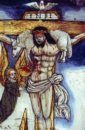| Keywords: MCC-42054 Veelluik met het martelaarschap van de H. Theodosia (19).jpg Artwork nl Anonymous Gelre nl Middenstuk 1 Theodosia verzoekt toelating tot de gevangenis Rechtsboven een engel met banderol waarop de tekst Ghi sijt verhoert die geve die ghi do bidt heb ick gevestigt mit mijnen gelt die martelie te liden 2 Theodosia wordt bij de magistraat ter verantwoording geroepen Op het tekstbord Desen s alch sal ick mitter hulpen des heren voer s en 3 Theodosia ™s marteling aan de hefboom Op het tekstbord Ic ben bereyd dinc voer iezus christo te liden 4a Theodosia aan de schandpaal 4b Theodosia ™s ledematen worden uitgerekt 5 Allegorische voorstelling Christus aan het kruis met het offerlam op zijn schouders; onder het kruis negen schapen Op de voorgrond links een non rechts koning David met een gouden kroon op zijn hoofd en een herdersstaf met schep in beide handen die hij naar de non uitsteekt; tussen hen in ligt een harp Op het tekstbord suster hoede die scapen dier gedacten in die minne des brudegoms iesus opten berch caluarie 6a Theodosia uit het water gered door twee engelen 6b Vijf nonnen en een vrouw in wereldse kledij bezoeken Theodosia in de gevangenis Op het tekstbord min medes elen in cro Christo den enge w ech Het opschrift op de lijst onder de voorstelling is onleesbaar 7 Theodosia voor de wilde dieren geworpen Op het tekstbord nu suldi bekennen hoe vol si vermogen die god mit pueren herten minnen 8 Onthoofding van Theodosia Op het tekstbord dat ic inren tiit des vreden heb vercregen dat sal ic inden striit nie verliesen 9a Verschijning van Theodosia aan haar ouders Op het tekstbord sieh hoe soet die glorie ist daer du mi af beroeven wolste 9b Begrafenis van Theodosia Een zwevende engel met banderol waarop si heft nu salighe vrocht Aan weerszijden van deze taferelen zijn vrouwelijke heiligen afgebeeld steeds twee aan twee met tussen hen in een geknielde non Op de eerste voorstelling links in plaats van een vrouwelijke heilige Maria met kind Links 10a Madonna op de maansikkel en Fides Opschriften / fides 10b Caritas en Spes Opschriften niet leesbaar 11a Agatha en Dorothea Opschriften aghata / doratea 11b Apollonia met attribuut van Agatha tang waarin in plaats van een tand een borst is geklemd en Euphrosia Opschriften appolonia / effrosia 12a Anatolia en Christina Opschriften anatolia / 12b Victoria en Sophia Opschriften victoria / sophia Rechts 13a Margaretha en Gertrudis Opschriften a gretha / gertrudis 13b Ursula en Walburga Opschriften ursula / 14a Catharina en Barbara Opschriften katrina / barbara 14b Agnes en Prisca Opschriften agneta / priska 15a Cecilia en Cunera Opschriften cecilia / cunera 15b Lucia en Clara Opschriften lucia / clara Binnenzijde linkerluiken 16 Kruisdraging met Veronica en Simon van Cyrene 17 Doornenkroning Rechts een als priester geklede heilige met een kelk in de hand en een knielende non 18 Geseling Rechts een H Bisschop 19 Christus in de Hof van Olijven en de stigmatisatie van de Franciscus 20 Besnijdenis Rechts een reguliere kanunnik en een geknielde vrouw in 16de-eeuwse kledij met de attributen van de H Goedele een lantaarn geflankeerd door een engel met een brandende kaars en een duivel met een blaasbalg; daaronder het opschrift gudila 21 Ontkleding van Christus Rechts een heilige met een boek en een ladder 22 Kruisnageling Rechts de apostel Thomas 23 Christus aan het kruis met Maria Johannes en de drie vrouwen Rechts Antonius 24 Bewening Rechts de apostel Paulus en twee geknielde nonnen 25 Christus treedt de wijnpers Links Augustinus rechts een reguliere kanunnik Binnenzijde rechterluiken 26 Aanbidding der koningen 27 Geboorte van Christus Opschrift gloria in excelsis 28a Visitatie 28b Vier nonnen knielend voor een altaar waarop een drieluik met de Kruisiging Achter hen een priester Boven diens hoofd h ia Rechts daarvan een banderol met eenregelige tekst van een lied adv i g i I Fi Filius dn domini 29 Annunciatie Opschrift ave gratia plena 30 Genadestoel Rechtsonder op de voorgrond knielt een non Op het tekstbord god die alle creatueren gescapen heft en ons mit sin dierbaren bloet verlost heft hi wil ock sin gracie geuen ge eit v an der oude naam van de stichtster-non 31 Christus verschijnt aan Maria 32 Hemelvaart van Christus 33 Kroning van Maria 34 Allegorische voorstelling God de Vader gezeten op een troon met op de trappen die naar de troon voeren links de vijf wijze rechts de vijf dwaze maagden; in het midden een engel boven de hellemond met drie verdoemden Op de banderol in de linkerhand van de engel Gae t of Myt ghi vermadi vermaledijden ; op de banderol in zijn rechterhand coemt ghi gebenedide Op het tekstbord bij de wijze maagden gaet tot der gene daer se te coop is Op het tekstbord bij de dwaze maagden geft ons den olie vor ons lamp Op de banderol aan de onderzijde van de voorstelling rick der hemelen sal worden all fiere maechden Buitenzijde linkerluiken Nr 35 36 en 40 t/m 44 zijn gewijd aan de zeven vallen van Christus De voorstellingen zijn zeer verwant aan zeven houtsneden met dit thema gedrukt op één blad getiteld ˜O mensch betracht dy siben vell Christi und dy siben herzenlaydt Marie ™ Wenen Albertina inv nr 1930-70 Zuid-Duitsland ca 1480; zie Marrow 1979 p 82 89 100 106 131 170 pl VIII 35 Christus ™ val voor de kruisnageling zesde val 36 Kruisoprichting zevende val 37 Allegorische voorstelling Christus als Man van Smarten en gebonden aan de geselpaal houdt een rood koord vast dat verbonden is met een knielende non Tekstrol Christus o dochter vollighet my want ic gepassijt bin voor di wilt mij u hert geven om ewich te leuen Tekstrol non here ic offer u myn hert nu ende inder ewicheit Achter de non zeven kleinere opschriften verwijzend naar zeven deugden elk voorafgegaan door een hand met een geselroede waarvan de eerste en de derde onleesbaar zijn 2 die mel it mildheid ; 4 gehoorsamheijt; 5 wakinge; 6 silencia ; 7 arheyt waarheid 38 Allegorische voorstelling In een ommuurde tuin slaat Christus met een hamer o