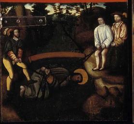 | Keywords: MCC-42054 Veelluik met het martelaarschap van de H. Theodosia (72).jpg Artwork nl Anonymous Gelre nl Middenstuk 1 Theodosia verzoekt toelating tot de gevangenis Rechtsboven een engel met banderol waarop de tekst Ghi sijt verhoert die geve die ghi do bidt heb ick gevestigt mit mijnen gelt die martelie te liden 2 Theodosia wordt bij de magistraat ter verantwoording geroepen Op het tekstbord Desen s alch sal ick mitter hulpen des heren voer s en 3 Theodosia ™s marteling aan de hefboom Op het tekstbord Ic ben bereyd dinc voer iezus christo te liden 4a Theodosia aan de schandpaal 4b Theodosia ™s ledematen worden uitgerekt 5 Allegorische voorstelling Christus aan het kruis met het offerlam op zijn schouders; onder het kruis negen schapen Op de voorgrond links een non rechts koning David met een gouden kroon op zijn hoofd en een herdersstaf met schep in beide handen die hij naar de non uitsteekt; tussen hen in ligt een harp Op het tekstbord suster hoede die scapen dier gedacten in die minne des brudegoms iesus opten berch caluarie 6a Theodosia uit het water gered door twee engelen 6b Vijf nonnen en een vrouw in wereldse kledij bezoeken Theodosia in de gevangenis Op het tekstbord min medes elen in cro Christo den enge w ech Het opschrift op de lijst onder de voorstelling is onleesbaar 7 Theodosia voor de wilde dieren geworpen Op het tekstbord nu suldi bekennen hoe vol si vermogen die god mit pueren herten minnen 8 Onthoofding van Theodosia Op het tekstbord dat ic inren tiit des vreden heb vercregen dat sal ic inden striit nie verliesen 9a Verschijning van Theodosia aan haar ouders Op het tekstbord sieh hoe soet die glorie ist daer du mi af beroeven wolste 9b Begrafenis van Theodosia Een zwevende engel met banderol waarop si heft nu salighe vrocht Aan weerszijden van deze taferelen zijn vrouwelijke heiligen afgebeeld steeds twee aan twee met tussen hen in een geknielde non Op de eerste voorstelling links in plaats van een vrouwelijke heilige Maria met kind Links 10a Madonna op de maansikkel en Fides Opschriften / fides 10b Caritas en Spes Opschriften niet leesbaar 11a Agatha en Dorothea Opschriften aghata / doratea 11b Apollonia met attribuut van Agatha tang waarin in plaats van een tand een borst is geklemd en Euphrosia Opschriften appolonia / effrosia 12a Anatolia en Christina Opschriften anatolia / 12b Victoria en Sophia Opschriften victoria / sophia Rechts 13a Margaretha en Gertrudis Opschriften a gretha / gertrudis 13b Ursula en Walburga Opschriften ursula / 14a Catharina en Barbara Opschriften katrina / barbara 14b Agnes en Prisca Opschriften agneta / priska 15a Cecilia en Cunera Opschriften cecilia / cunera 15b Lucia en Clara Opschriften lucia / clara Binnenzijde linkerluiken 16 Kruisdraging met Veronica en Simon van Cyrene 17 Doornenkroning Rechts een als priester geklede heilige met een kelk in de hand en een knielende non 18 Geseling Rechts een H Bisschop 19 Christus in de Hof van Olijven en de stigmatisatie van de Franciscus 20 Besnijdenis Rechts een reguliere kanunnik en een geknielde vrouw in 16de-eeuwse kledij met de attributen van de H Goedele een lantaarn geflankeerd door een engel met een brandende kaars en een duivel met een blaasbalg; daaronder het opschrift gudila 21 Ontkleding van Christus Rechts een heilige met een boek en een ladder 22 Kruisnageling Rechts de apostel Thomas 23 Christus aan het kruis met Maria Johannes en de drie vrouwen Rechts Antonius 24 Bewening Rechts de apostel Paulus en twee geknielde nonnen 25 Christus treedt de wijnpers Links Augustinus rechts een reguliere kanunnik Binnenzijde rechterluiken 26 Aanbidding der koningen 27 Geboorte van Christus Opschrift gloria in excelsis 28a Visitatie 28b Vier nonnen knielend voor een altaar waarop een drieluik met de Kruisiging Achter hen een priester Boven diens hoofd h ia Rechts daarvan een banderol met eenregelige tekst van een lied adv i g i I Fi Filius dn domini 29 Annunciatie Opschrift ave gratia plena 30 Genadestoel Rechtsonder op de voorgrond knielt een non Op het tekstbord god die alle creatueren gescapen heft en ons mit sin dierbaren bloet verlost heft hi wil ock sin gracie geuen ge eit v an der oude naam van de stichtster-non 31 Christus verschijnt aan Maria 32 Hemelvaart van Christus 33 Kroning van Maria 34 Allegorische voorstelling God de Vader gezeten op een troon met op de trappen die naar de troon voeren links de vijf wijze rechts de vijf dwaze maagden; in het midden een engel boven de hellemond met drie verdoemden Op de banderol in de linkerhand van de engel Gae t of Myt ghi vermadi vermaledijden ; op de banderol in zijn rechterhand coemt ghi gebenedide Op het tekstbord bij de wijze maagden gaet tot der gene daer se te coop is Op het tekstbord bij de dwaze maagden geft ons den olie vor ons lamp Op de banderol aan de onderzijde van de voorstelling rick der hemelen sal worden all fiere maechden Buitenzijde linkerluiken Nr 35 36 en 40 t/m 44 zijn gewijd aan de zeven vallen van Christus De voorstellingen zijn zeer verwant aan zeven houtsneden met dit thema gedrukt op één blad getiteld ˜O mensch betracht dy siben vell Christi und dy siben herzenlaydt Marie ™ Wenen Albertina inv nr 1930-70 Zuid-Duitsland ca 1480; zie Marrow 1979 p 82 89 100 106 131 170 pl VIII 35 Christus ™ val voor de kruisnageling zesde val 36 Kruisoprichting zevende val 37 Allegorische voorstelling Christus als Man van Smarten en gebonden aan de geselpaal houdt een rood koord vast dat verbonden is met een knielende non Tekstrol Christus o dochter vollighet my want ic gepassijt bin voor di wilt mij u hert geven om ewich te leuen Tekstrol non here ic offer u myn hert nu ende inder ewicheit Achter de non zeven kleinere opschriften verwijzend naar zeven deugden elk voorafgegaan door een hand met een geselroede waarvan de eerste en de derde onleesbaar zijn 2 die mel it mildheid ; 4 gehoorsamheijt; 5 wakinge; 6 silencia ; 7 arheyt waarheid 38 Allegorische voorstelling In een ommuurde tuin slaat Christus met een hamer o