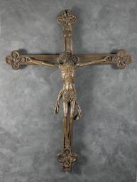 | Keywords: MCC-42230 Christus aan het kruis, aan uiteinden evangelistensymbolen (1).tif Artwork nl Meester van Elsloo Opper-Gelre nl De gestorven Christus hangt uitgestrekt aan het kruis Zijn hoofd neigt naar links In de geopende mond zijn de tanden zichtbaar De voeten zijn over elkaar gespijkerd de rechter over de linker Opvallend is de uitgemergelde staat van het lichaam met de aangeduide huidplooien op de buik en boven de nagel in de rechtervoet De schouderkoppen zijn begrensd door een diepe groef Christus draagt de doornenkroon op het hoofd dat is omgeven door sterk gestileerde pijpenkrullen Hij is met de lendendoek bekleed waarvan aan weerszijden een slip afhangt In de stof vele kleine onregelmatige kreukels Het kruis is voorzien van vijf vierpassen één in het midden achter het hoofd van Christus en vier aan de uiteinden van de kruisarmen In de middelste de kruisnimbus in de vier andere zijn de vier evangelistensymbolen weergegevem Bovenaan de adelaar en profil naar rechts de kop naar links Hij houdt de banderol met beide poten en de snavel vast Links de engel driekwart naar rechts het gezicht en face Hij houdt de banderol met zijn rechterhand voor zich vast Rechts de stier en profil naar links de kop driekwart naar rechts De banderol ligt over zijn rug gedrapeerd Onderaan de leeuw met het lichaam naar links De banderol hangt over zijn rug en het uiteinde ervan heeft hij in zijn bek Alle symbolen zijn voorzien van vleugels Het kruis heeft een meervoudig geprofileerde rand Onder de adelaar hangt de titulus Polychromie Enkele sporen polychromie In de zijkant van het kruis zit een groef met de resten van lijm en van rode verf Op de kruisnimbus rood Op de wang van Christus groen gemorst Wit op de lendendoek Rood op de achtergrond van de leeuw Techniek Het corpus is rondom uitgewerkt aan de achterkant wat schematischer Een grote noest in het linkerbeen en op de borst De armen van het corpus zijn apart ingestoken en gelijmd Borgpen op de rechterschouder De slippen van de lendendoek zijn apart aangezet Het corpus is aan het kruis bevestigd met houten pennen in handen en voeten De pennen hebben piramidevormige koppen In de rug van het corpus zit een metalen haak die in een metalen oog is gestoken dat op zijn beurt weer aan het kruis is bevestigd Achter in de nek zit een onregelmatig gat werkbank Een gescheurde noest in de langsbalk van het kruis links Het kruis bestaat uit twee delen; de dwarsbalk is aan de voorzijde in de langsbalk ingelaten De medaillons waren oorspronkelijk in één geheel meegesneden met de balken Boven in het kruis een groot gesmeed oog Recht achter het hoofd van Christus zit een rond gat in de kruisnimbus Staat Het gat boven de kop van de adelaar is waarschijnlijk later aangebracht waardoor het medaillon is gaan splijten en de kop verloren is gegaan De titulus is modern gespijkerd Onder de titulus zit een restant van een houten pen waarschijnlijk origineel Het hoofd van Christus is aangevuld in notenhout Het betreft het linkergedeelte met linkeroog- en wang Er zit een latere aanvulling in de nek De afgebrokkelde schouders zijn aangevuld met een wasachtige substantie In de rechterschouder is ook een stuk hout ingezet Het corpus is op meerdere plaatsen met overlangse spieën en donkerbruine wassubstantie ingevuld o a op de borst en de buik Op de rechterknie is een spie vastgezet met een houten pen In de rechterenkel overlangse spieën De rechter kleineteen is vervangen De rechter groteteen idem Twee andere tenen zijn opnieuw aangelijmd In het linkerbeen verschillende overlangse invoegingen ter plekke van gescheurde noest De middelvinger en de wijsvinger van de linkerhand zijn vervangen of apart aangezet De middel- en de wijsvinger van de rechterhand zijn vervangen De rechterlob van het medaillon met de arend is vervangen Vrijwel het hele linker- en rechtermedaillon met engel en stier zijn vervangen 17de eeuw en de rechterlob van de leeuw is vervangen Beide profielranden langs de bovenkant van de dwarsbalk zijn vervangen Aan de achterzijde is de dwarsbalk met meerdere delen aangespijkerd hout verstevigd naaldhout De profielrand aan de onderkant is vervangen Achter de knieën van Christus een vierkant ingezet stuk hout Een deel van de profiellijst links achter het lichaam van Christus is vervangen Afgebroken een deel van de doornenkroon; delen van de schouders; de rechterpink; het bovenstuk van het bovenste medaillon met de kop van de arend Zeer slechte kwaliteit hout dat vele scheuren en daarbij uitgebroken delen vertoont Scheuren ook in de rechterarm en in de benen Het linkerbeen is doorgebroken Het rechter idem maar hersteld Oppervlaktescheuren in de leeuw Een scheur in de langsbalk van een kruis links en rechts Scheuren mogelijk ontstaan door aflogen In de dwarsbalk aan de uiteinden aan weerskanten een moderne haak aan een moderne ijzeren plaat voor ophanging De bovenkant van het hoofd en de schouders van Christus lijken erg door houtworm aangetast te zijn geweest evenals de dwarsbalk Het beeld is zeer vuil en deels bedekt door een donkere was- of beitslaag between 1520 1529 nl eikenhout verf Size 224 0 176 0 cm nl Hoogte 224 0cm Breedte 176 0cm Diepte 24 0cm Institution Museum Catharijneconvent object history exhibition history credit line nl Foto Museum Catharijneconvent Utrecht foto Ruben de Heer accession number Object number 42230 Inventory number RMCC b00116 place of creation https //www catharijneconvent nl/adlib/42230/ View this work on the website of Museum Catharijneconvent Museum Catharijneconvent Cc-zero <gallery> File MCC-42230_Christus_aan_het_kruis _aan_uiteinden_evangelistensymbolen_ 1 tif File MCC-42230_Christus_aan_het_kruis _aan_uiteinden_evangelistensymbolen_ 2 tif </gallery> Uncategorized 2015 March 1 |