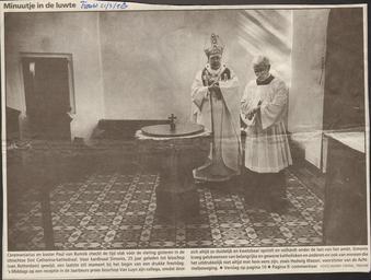 | Keywords: MCC-42291 Doopvont, achtzijdige kuip met sferische vlakken, vier verschillende maskers aan bovenzijde (3).jpg Artwork nl Anonymous Maasland nl De doopvont bestaat uit een achtzijdige kuip met sferische vlakken; aan de bovenrand een profiel bestaande uit kwarthol staaf halfhol en een kleiner staafprofiel Vier van de acht vlakken dragen aan de bovenzijde een maskerkop die aan de bovenzijde vlak is en halfrond uitspringt ten opzichte van het vlak van de rand Beschrijving van de koppen van links naar rechts De eerste heeft een lang gelaat met hoge jukbeenderen van boven afgeplatte amandelvormige ogen met aangeduide pupil en iris waarboven veel ruimte een hoekige kin en een haakneus Hij laat breed grijnzend zijn gebit zien De overige drie hebben afgezien van de neus die bij deze koppen recht is met uitstaande neusvleugels dezelfde gelaatsvorm maar kijken ernstig en hebben een smalle mond met iets naar beneden gebogen mondhoeken De hoofdbedekking is bij alle koppen verschillend Bij alle varianten zijn de oren bedekt Het eerste gelaat is omgeven door een nauwsluitende hoofdbedekking de tweede kop draagt een zich naar boven versmallende hoed de derde een muts waarvan de punt naar voren hangt en de vierde heeft een aan de voorzijde afgeplatte ronde hoofdbedekking De uitholling van de kuip is half bol van vorm In de brede bovenrand van de kuip zijn in twee tegenover elkaar liggende zijden dookgaten te zien één rechthoekig gat van ca 4 5 x 3 cm één ovaal uitgesleten gat van 5 5 x 4 5 cm Aan één zijde in de rand een 10 cm brede ondiepe uitholling over de gehele breedte De doopvont staat op een 18 5 cm hoge tufstenen of kunststenen schacht die de overgang vormt naar een 29 5 cm hoge zeszijdige zandstenen voet De vlakken van schacht en voet zijn iets hol Techniek De binnenzijde van de vont is glad Op de bovenrand smalle evenwijdige beitelsporen Het oppervlak van de vont is bedekt met een vrij regelmatig patroon van ingehamerde ronde punten gebouchardeerd met uitzondering van de gezichten het holprofiel met de rand daarboven en de graten tussen de vlakken Het oppervlak van de schacht is afgewerkt met evenwijdige horizontale lijnen tandbeitel Staat Voet en schacht behoren niet bij de kuip De voet lijkt oud de schacht is modern Bij de vont wordt een modern rond eiken deksel gebruikt met in het midden een bol met kruis Het oorspronkelijke deksel ontbreekt Afgebroken vele kleine delen langs de randen langs een natuurlijke breuk die loopt ter hoogte van de profielrand en het bovenste deel van de gezichten Deze breuk loopt vrijwel rondom door de gehele vont behalve ter plaatse van de 10 cm brede uitholling in de rand In de breuk hier en daar invullingen Alle neuzen van de figuren zijn beschadigd De graten van de voet zijn beschadigd In de bovenrand een onregelmatig rechthoekige beschadiging Aan de binnenzijde van de vont kalkafzetting between 1400 1499 nl Naamse steen Size 91 0 80 0 cm nl Hoogte 91 0cm Breedte 80 0cm Diepte 79 5cm Institution Museum Catharijneconvent object history exhibition history credit line nl Foto Museum Catharijneconvent Utrecht foto Ruben de Heer Reproduction title nl Kardinaal Simonis en koster Paul van Bunnik bij doopvont ABM bs00611 bij gelegenheid van het 25-jarig bisschopsfeest van Simonis 21 maart 1996 accession number Object number 42291 Inventory number ABM bs00611 place of creation https //www catharijneconvent nl/adlib/42291/ View this work on the website of Museum Catharijneconvent Museum Catharijneconvent Cc-zero <gallery> File MCC-42291_Doopvont _achtzijdige_kuip_met_sferische_vlakken _vier_verschillende_maskers_aan_bovenzijde_ 2 tif File MCC-42291_Doopvont _achtzijdige_kuip_met_sferische_vlakken _vier_verschillende_maskers_aan_bovenzijde_ 3 jpg File MCC-42291_Doopvont _achtzijdige_kuip_met_sferische_vlakken _vier_verschillende_maskers_aan_bovenzijde_ 1 tif </gallery> Items from the Catharinazaal Uncategorized 2015 March 1 |