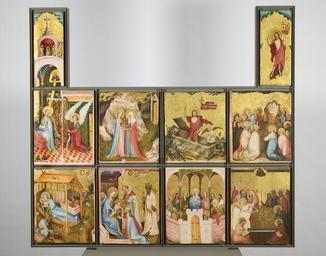 | Keywords: MCC-42339 Middelrijns altaar, annunciatie met afzonderlijk bovenstuk waarop God de Vader en vier engelen (2).tif Artwork nl Anonymous Middel-Rijn Anonymous Keulen Anonymous Westfalen nl Op de spreukband van de engel Ave gratia plena dominus tecum Gegroet begenadigde de Heer is met u Luc 1 28 Op de spreukband bij Maria Ecce ancilla domini fiat michi secundum verbum tuum Zie de dienstmaagd van de Heer mij geschiede naar uw woord Luc 1 38 between 1405 1414 nl paneel tempera olieverf linnen Size 73 0 60 0 cm nl Hoogte 73 0cm Breedte 60 0cm Institution Museum Catharijneconvent object history exhibition history credit line nl Foto Museum Catharijneconvent Utrecht foto Ruben de Heer Reproduction title nl Middelrijns altaar met omlijsting zoals aanwezig vanaf september 2006 accession number Object number 42339 Inventory number ABM s00025 01 place of creation https //www catharijneconvent nl/adlib/42339/ View this work on the website of Museum Catharijneconvent Museum Catharijneconvent Cc-zero <gallery> File MCC-42339_Middelrijns_altaar _annunciatie_met_afzonderlijk_bovenstuk_waarop_God_de_Vader_en_vier_engelen_ 1 tif File MCC-42339_Middelrijns_altaar _annunciatie_met_afzonderlijk_bovenstuk_waarop_God_de_Vader_en_vier_engelen_ 3 tif File MCC-42339_Middelrijns_altaar _annunciatie_met_afzonderlijk_bovenstuk_waarop_God_de_Vader_en_vier_engelen_ 2 tif </gallery> |