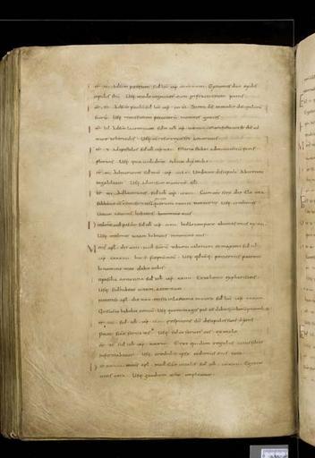 Keywords: MCC-61050 Evangeliarium (Lebuïnuscodex) (294).jpg Artwork nl Anonymous Noordoost-Frankrijk Anonymous Rijnland Anonymous Maasland nl De kern van de boekband van de Lebuïnuscodex wordt gevormd door twee eikenhouten platten De rug en het achterplat zijn overtrokken met zeemleer Het voorplat is rijkelijk versierd met verguld zilversmeedwerk reliëfs van walrustand en verscheidene stenen De compositie van de bekleding van het voorplat wordt bepaald door een verguld zilveren filigraankruis Aan de uiteinden van de kruisarmen bevinden zich vierpassen met overhoeks vierkant eveneens met filigraan gedecoreerd Hiervan zijn er slechts twee bewaard gebleven en wel die aan de verticale kruisarmen Zij bevatten tevens nog de oorspronkelijke versiering bestaande uit een filigraanmedaillon met een pseudo-camee van respectievelijk een mannen- en een vrouwenhoofd in profiel Het snijpunt van het kruis wordt ingenomen door een ver vooruitstekend Bacchuskopje in chalcedoon te herkennen aan de kleine druiventrosjes in zijn haartooi Het kopje is gevat in een filigraanmedaillon welke op zijn beurt weer is geplaatst op een vierpas van filigraanwerk Op elk van de kruisarmen bevindt zich een ovale steen 'en cabochon' op een medaillon met filigraan Het filigraanwerk van kruis en sierstukken is in de vorm van visblazen In de ruimten tussen de kruisarmen zijn rechthoekige reliëfs van walrustand aangebracht met de vier evangelisten en hun symbool De reliëfs hebben de volgende afmetingen H 10 0 x B 5 5 cm Van links boven naar rechts onder betreft het Mattheus met de engel Johannes met de adelaar Marcus met de gevleugelde leeuw en Lucas met de gevleugelde os De figuren zijn paarsgewijs als elkaars spiegelbeeld ten opzichte van de middenas geplaatst Mattheus en Johannes zitten vrijwel geheel frontaal terwijl Marcus en Lucas meer in profiel zijn afgebeeld Qua opbouw verschillen de vier reliëfs nauwelijks van elkaar Binnen een rand van vierlobbige blaadjes verheffen zich twee zuilen met een basis een kapiteel en een dekplaat Hierop rust een rondboog geflankeerd door twee torens en afgedekt met een fronton dat boven Mattheus en Johannes boogvormig en boven Marcus en Lucas driehoekig is Onder deze overhuiving zitten de evangelisten gekleed in een lang gewaad en mantel met gekruiste benen aan een lessenaar hun blote voeten rustend op een bankje Allen zijn baardeloos en voorzien van een nimbus Voorts houden ze een pen in hun rechterhand terwijl hun linker op een boek ligt of gebarend is opgeheven Boven elk van de evangelisten verschijnt in de opening van het fronton zijn symbool met een spreukband Dit rijkelijk gedecoreerde middenveld wordt omlijst door sierbanden van verguld koper De opbouw van de sierlijsten is steeds dezelfde een opstaande smalle band die op regelmatige afstanden is voorzien van holten met aan weerszijden een brede strook voorzien van een gestanst motief Aan de lange zijden van de boekband bestaat het motief uit palmetten aan de korte zijden uit rozetten Van deze laatstgenoemde stroken ontbreekt steeds de buitenste rand Bij alle stroken met palmettenmotief wijzen de palmetten naar links met uitzondering van de buitenste strook rechtsboven die het motief in tegengestelde richting toont Verguld zilveren rozetten op de hoeken van het voorplat omgeven door een smalle rand van filigraanwerk met cirkelmotief en bekroond met een 'en cabochon' gezette steen completeren het geheel Van de rozet links onder ontbreekt de steen en is slechts de buitenste rand over Aan de voorzijde van de boekband bevinden zich nog de rudimenten van twee sluitingen between u'825' u'1000' u'1150' u'850' u'1199' u'1199' nl perkament eikenhout zilver goud koper walrustand chalcedoon glas leer Size 35 5 26 0 cm nl Hoogte 35 5cm Breedte 26 0cm Diepte 13 5cm Institution Museum Catharijneconvent object history exhibition history credit line nl Foto Museum Catharijneconvent Utrecht foto HetFotoAtelier Peter Rothengatter accession number Object number 61050 Inventory number ABM h1 place of creation https //www catharijneconvent nl/adlib/61050/ View this work on the website of Museum Catharijneconvent Museum Catharijneconvent Cc-zero <gallery> File MCC-61050_Evangeliarium_Lebuïnuscodex_ 11 jpg File MCC-61050_Evangeliarium_Lebuïnuscodex_ 172 jpg File MCC-61050_Evangeliarium_Lebuïnuscodex_ 212 jpg File MCC-61050_Evangeliarium_Lebuïnuscodex_ 61 jpg File MCC-61050_Evangeliarium_Lebuïnuscodex_ 12 jpg File MCC-61050_Evangeliarium_Lebuïnuscodex_ 213 jpg File MCC-61050_Evangeliarium_Lebuïnuscodex_ 56 jpg File MCC-61050_Evangeliarium_Lebuïnuscodex_ 232 jpg File MCC-61050_Evangeliarium_Lebuïnuscodex_ 93 jpg File MCC-61050_Evangeliarium_Lebuïnuscodex_ 99 jpg File MCC-61050_Evangeliarium_Lebuïnuscodex_ 184 jpg File MCC-61050_Evangeliarium_Lebuïnuscodex_ 64 jpg File MCC-61050_Evangeliarium_Lebuïnuscodex_ 299 jpg File MCC-61050_Evangeliarium_Lebuïnuscodex_ 86 jpg File MCC-61050_Evangeliarium_Lebuïnuscodex_ 260 jpg File MCC-61050_Evangeliarium_Lebuïnuscodex_ 159 jpg File MCC-61050_Evangeliarium_Lebuïnuscodex_ 247 jpg File MCC-61050_Evangeliarium_Lebuïnuscodex_ 180 jpg File MCC-61050_Evangeliarium_Lebuïnuscodex_ 121 jpg File MCC-61050_Evangeliarium_Lebuïnuscodex_ 315 jpg File MCC-61050_Evangeliarium_Lebuïnuscodex_ 284 jpg File MCC-61050_Evangeliarium_Lebuïnuscodex_ 33 jpg File MCC-61050_Evangeliarium_Lebuïnuscodex_ 44 jpg File MCC-61050_Evangeliarium_Lebuïnuscodex_ 258 jpg File MCC-61050_Evangeliarium_Lebuïnuscodex_ 237 jpg File MCC-61050_Evangeliarium_Lebuïnuscodex_ 20 jpg File MCC-61050_Evangeliarium_Lebuïnuscodex_ 220 jpg File MCC-61050_Evangeliarium_Lebuïnuscodex_ 279 jpg File MCC-61050_Evangeliarium_Lebuïnuscodex_ 183 jpg File MCC-61050_Evangeliarium_Lebuïnuscodex_ 60 jpg File MCC-61050_Evangeliarium_Lebuïnuscodex_ 166 jpg File MCC-61050_Evangeliarium_Lebuïnuscodex_ 97 jpg File MCC-61050_Evangeliarium_Lebuïnuscodex_ 71 jpg File MCC-61050_Evangeliarium_Lebuïnuscodex_ 132 jpg File MCC-61050_Evangeliarium_Lebuïnus