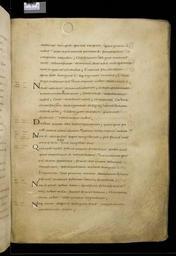 | Keywords: MCC-61050 Evangeliarium (Lebuïnuscodex) (162).jpg Artwork nl Anonymous Noordoost-Frankrijk Anonymous Rijnland Anonymous Maasland nl De kern van de boekband van de Lebuïnuscodex wordt gevormd door twee eikenhouten platten De rug en het achterplat zijn overtrokken met zeemleer Het voorplat is rijkelijk versierd met verguld zilversmeedwerk reliëfs van walrustand en verscheidene stenen De compositie van de bekleding van het voorplat wordt bepaald door een verguld zilveren filigraankruis Aan de uiteinden van de kruisarmen bevinden zich vierpassen met overhoeks vierkant eveneens met filigraan gedecoreerd Hiervan zijn er slechts twee bewaard gebleven en wel die aan de verticale kruisarmen Zij bevatten tevens nog de oorspronkelijke versiering bestaande uit een filigraanmedaillon met een pseudo-camee van respectievelijk een mannen- en een vrouwenhoofd in profiel Het snijpunt van het kruis wordt ingenomen door een ver vooruitstekend Bacchuskopje in chalcedoon te herkennen aan de kleine druiventrosjes in zijn haartooi Het kopje is gevat in een filigraanmedaillon welke op zijn beurt weer is geplaatst op een vierpas van filigraanwerk Op elk van de kruisarmen bevindt zich een ovale steen 'en cabochon' op een medaillon met filigraan Het filigraanwerk van kruis en sierstukken is in de vorm van visblazen In de ruimten tussen de kruisarmen zijn rechthoekige reliëfs van walrustand aangebracht met de vier evangelisten en hun symbool De reliëfs hebben de volgende afmetingen H 10 0 x B 5 5 cm Van links boven naar rechts onder betreft het Mattheus met de engel Johannes met de adelaar Marcus met de gevleugelde leeuw en Lucas met de gevleugelde os De figuren zijn paarsgewijs als elkaars spiegelbeeld ten opzichte van de middenas geplaatst Mattheus en Johannes zitten vrijwel geheel frontaal terwijl Marcus en Lucas meer in profiel zijn afgebeeld Qua opbouw verschillen de vier reliëfs nauwelijks van elkaar Binnen een rand van vierlobbige blaadjes verheffen zich twee zuilen met een basis een kapiteel en een dekplaat Hierop rust een rondboog geflankeerd door twee torens en afgedekt met een fronton dat boven Mattheus en Johannes boogvormig en boven Marcus en Lucas driehoekig is Onder deze overhuiving zitten de evangelisten gekleed in een lang gewaad en mantel met gekruiste benen aan een lessenaar hun blote voeten rustend op een bankje Allen zijn baardeloos en voorzien van een nimbus Voorts houden ze een pen in hun rechterhand terwijl hun linker op een boek ligt of gebarend is opgeheven Boven elk van de evangelisten verschijnt in de opening van het fronton zijn symbool met een spreukband Dit rijkelijk gedecoreerde middenveld wordt omlijst door sierbanden van verguld koper De opbouw van de sierlijsten is steeds dezelfde een opstaande smalle band die op regelmatige afstanden is voorzien van holten met aan weerszijden een brede strook voorzien van een gestanst motief Aan de lange zijden van de boekband bestaat het motief uit palmetten aan de korte zijden uit rozetten Van deze laatstgenoemde stroken ontbreekt steeds de buitenste rand Bij alle stroken met palmettenmotief wijzen de palmetten naar links met uitzondering van de buitenste strook rechtsboven die het motief in tegengestelde richting toont Verguld zilveren rozetten op de hoeken van het voorplat omgeven door een smalle rand van filigraanwerk met cirkelmotief en bekroond met een 'en cabochon' gezette steen completeren het geheel Van de rozet links onder ontbreekt de steen en is slechts de buitenste rand over Aan de voorzijde van de boekband bevinden zich nog de rudimenten van twee sluitingen between u'825' u'1000' u'1150' u'850' u'1199' u'1199' nl perkament eikenhout zilver goud koper walrustand chalcedoon glas leer Size 35 5 26 0 cm nl Hoogte 35 5cm Breedte 26 0cm Diepte 13 5cm Institution Museum Catharijneconvent object history exhibition history credit line nl Foto Museum Catharijneconvent Utrecht foto HetFotoAtelier Peter Rothengatter accession number Object number 61050 Inventory number ABM h1 place of creation https //www catharijneconvent nl/adlib/61050/ View this work on the website of Museum Catharijneconvent Museum Catharijneconvent Cc-zero <gallery> File MCC-61050_Evangeliarium_Lebuïnuscodex_ 11 jpg File MCC-61050_Evangeliarium_Lebuïnuscodex_ 172 jpg File MCC-61050_Evangeliarium_Lebuïnuscodex_ 212 jpg File MCC-61050_Evangeliarium_Lebuïnuscodex_ 61 jpg File MCC-61050_Evangeliarium_Lebuïnuscodex_ 12 jpg File MCC-61050_Evangeliarium_Lebuïnuscodex_ 213 jpg File MCC-61050_Evangeliarium_Lebuïnuscodex_ 56 jpg File MCC-61050_Evangeliarium_Lebuïnuscodex_ 232 jpg File MCC-61050_Evangeliarium_Lebuïnuscodex_ 93 jpg File MCC-61050_Evangeliarium_Lebuïnuscodex_ 99 jpg File MCC-61050_Evangeliarium_Lebuïnuscodex_ 184 jpg File MCC-61050_Evangeliarium_Lebuïnuscodex_ 64 jpg File MCC-61050_Evangeliarium_Lebuïnuscodex_ 299 jpg File MCC-61050_Evangeliarium_Lebuïnuscodex_ 86 jpg File MCC-61050_Evangeliarium_Lebuïnuscodex_ 260 jpg File MCC-61050_Evangeliarium_Lebuïnuscodex_ 159 jpg File MCC-61050_Evangeliarium_Lebuïnuscodex_ 247 jpg File MCC-61050_Evangeliarium_Lebuïnuscodex_ 180 jpg File MCC-61050_Evangeliarium_Lebuïnuscodex_ 121 jpg File MCC-61050_Evangeliarium_Lebuïnuscodex_ 315 jpg File MCC-61050_Evangeliarium_Lebuïnuscodex_ 284 jpg File MCC-61050_Evangeliarium_Lebuïnuscodex_ 33 jpg File MCC-61050_Evangeliarium_Lebuïnuscodex_ 44 jpg File MCC-61050_Evangeliarium_Lebuïnuscodex_ 258 jpg File MCC-61050_Evangeliarium_Lebuïnuscodex_ 237 jpg File MCC-61050_Evangeliarium_Lebuïnuscodex_ 20 jpg File MCC-61050_Evangeliarium_Lebuïnuscodex_ 220 jpg File MCC-61050_Evangeliarium_Lebuïnuscodex_ 279 jpg File MCC-61050_Evangeliarium_Lebuïnuscodex_ 183 jpg File MCC-61050_Evangeliarium_Lebuïnuscodex_ 60 jpg File MCC-61050_Evangeliarium_Lebuïnuscodex_ 166 jpg File MCC-61050_Evangeliarium_Lebuïnuscodex_ 97 jpg File MCC-61050_Evangeliarium_Lebuïnuscodex_ 71 jpg File MCC-61050_Evangeliarium_Lebuïnuscodex_ 132 jpg File MCC-61050_Evangeliarium_Lebuïn