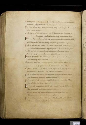 | Keywords: MCC-61050 Evangeliarium (Lebuïnuscodex) (298).jpg Artwork nl Anonymous Noordoost-Frankrijk Anonymous Rijnland Anonymous Maasland nl De kern van de boekband van de Lebuïnuscodex wordt gevormd door twee eikenhouten platten De rug en het achterplat zijn overtrokken met zeemleer Het voorplat is rijkelijk versierd met verguld zilversmeedwerk reliëfs van walrustand en verscheidene stenen De compositie van de bekleding van het voorplat wordt bepaald door een verguld zilveren filigraankruis Aan de uiteinden van de kruisarmen bevinden zich vierpassen met overhoeks vierkant eveneens met filigraan gedecoreerd Hiervan zijn er slechts twee bewaard gebleven en wel die aan de verticale kruisarmen Zij bevatten tevens nog de oorspronkelijke versiering bestaande uit een filigraanmedaillon met een pseudo-camee van respectievelijk een mannen- en een vrouwenhoofd in profiel Het snijpunt van het kruis wordt ingenomen door een ver vooruitstekend Bacchuskopje in chalcedoon te herkennen aan de kleine druiventrosjes in zijn haartooi Het kopje is gevat in een filigraanmedaillon welke op zijn beurt weer is geplaatst op een vierpas van filigraanwerk Op elk van de kruisarmen bevindt zich een ovale steen 'en cabochon' op een medaillon met filigraan Het filigraanwerk van kruis en sierstukken is in de vorm van visblazen In de ruimten tussen de kruisarmen zijn rechthoekige reliëfs van walrustand aangebracht met de vier evangelisten en hun symbool De reliëfs hebben de volgende afmetingen H 10 0 x B 5 5 cm Van links boven naar rechts onder betreft het Mattheus met de engel Johannes met de adelaar Marcus met de gevleugelde leeuw en Lucas met de gevleugelde os De figuren zijn paarsgewijs als elkaars spiegelbeeld ten opzichte van de middenas geplaatst Mattheus en Johannes zitten vrijwel geheel frontaal terwijl Marcus en Lucas meer in profiel zijn afgebeeld Qua opbouw verschillen de vier reliëfs nauwelijks van elkaar Binnen een rand van vierlobbige blaadjes verheffen zich twee zuilen met een basis een kapiteel en een dekplaat Hierop rust een rondboog geflankeerd door twee torens en afgedekt met een fronton dat boven Mattheus en Johannes boogvormig en boven Marcus en Lucas driehoekig is Onder deze overhuiving zitten de evangelisten gekleed in een lang gewaad en mantel met gekruiste benen aan een lessenaar hun blote voeten rustend op een bankje Allen zijn baardeloos en voorzien van een nimbus Voorts houden ze een pen in hun rechterhand terwijl hun linker op een boek ligt of gebarend is opgeheven Boven elk van de evangelisten verschijnt in de opening van het fronton zijn symbool met een spreukband Dit rijkelijk gedecoreerde middenveld wordt omlijst door sierbanden van verguld koper De opbouw van de sierlijsten is steeds dezelfde een opstaande smalle band die op regelmatige afstanden is voorzien van holten met aan weerszijden een brede strook voorzien van een gestanst motief Aan de lange zijden van de boekband bestaat het motief uit palmetten aan de korte zijden uit rozetten Van deze laatstgenoemde stroken ontbreekt steeds de buitenste rand Bij alle stroken met palmettenmotief wijzen de palmetten naar links met uitzondering van de buitenste strook rechtsboven die het motief in tegengestelde richting toont Verguld zilveren rozetten op de hoeken van het voorplat omgeven door een smalle rand van filigraanwerk met cirkelmotief en bekroond met een 'en cabochon' gezette steen completeren het geheel Van de rozet links onder ontbreekt de steen en is slechts de buitenste rand over Aan de voorzijde van de boekband bevinden zich nog de rudimenten van twee sluitingen between u'825' u'1000' u'1150' u'850' u'1199' u'1199' nl perkament eikenhout zilver goud koper walrustand chalcedoon glas leer Size 35 5 26 0 cm nl Hoogte 35 5cm Breedte 26 0cm Diepte 13 5cm Institution Museum Catharijneconvent object history exhibition history credit line nl Foto Museum Catharijneconvent Utrecht foto HetFotoAtelier Peter Rothengatter accession number Object number 61050 Inventory number ABM h1 place of creation https //www catharijneconvent nl/adlib/61050/ View this work on the website of Museum Catharijneconvent Museum Catharijneconvent Cc-zero <gallery> File MCC-61050_Evangeliarium_Lebuïnuscodex_ 11 jpg File MCC-61050_Evangeliarium_Lebuïnuscodex_ 172 jpg File MCC-61050_Evangeliarium_Lebuïnuscodex_ 212 jpg File MCC-61050_Evangeliarium_Lebuïnuscodex_ 61 jpg File MCC-61050_Evangeliarium_Lebuïnuscodex_ 12 jpg File MCC-61050_Evangeliarium_Lebuïnuscodex_ 213 jpg File MCC-61050_Evangeliarium_Lebuïnuscodex_ 56 jpg File MCC-61050_Evangeliarium_Lebuïnuscodex_ 232 jpg File MCC-61050_Evangeliarium_Lebuïnuscodex_ 93 jpg File MCC-61050_Evangeliarium_Lebuïnuscodex_ 99 jpg File MCC-61050_Evangeliarium_Lebuïnuscodex_ 184 jpg File MCC-61050_Evangeliarium_Lebuïnuscodex_ 64 jpg File MCC-61050_Evangeliarium_Lebuïnuscodex_ 299 jpg File MCC-61050_Evangeliarium_Lebuïnuscodex_ 86 jpg File MCC-61050_Evangeliarium_Lebuïnuscodex_ 260 jpg File MCC-61050_Evangeliarium_Lebuïnuscodex_ 159 jpg File MCC-61050_Evangeliarium_Lebuïnuscodex_ 247 jpg File MCC-61050_Evangeliarium_Lebuïnuscodex_ 180 jpg File MCC-61050_Evangeliarium_Lebuïnuscodex_ 121 jpg File MCC-61050_Evangeliarium_Lebuïnuscodex_ 315 jpg File MCC-61050_Evangeliarium_Lebuïnuscodex_ 284 jpg File MCC-61050_Evangeliarium_Lebuïnuscodex_ 33 jpg File MCC-61050_Evangeliarium_Lebuïnuscodex_ 44 jpg File MCC-61050_Evangeliarium_Lebuïnuscodex_ 258 jpg File MCC-61050_Evangeliarium_Lebuïnuscodex_ 237 jpg File MCC-61050_Evangeliarium_Lebuïnuscodex_ 20 jpg File MCC-61050_Evangeliarium_Lebuïnuscodex_ 220 jpg File MCC-61050_Evangeliarium_Lebuïnuscodex_ 279 jpg File MCC-61050_Evangeliarium_Lebuïnuscodex_ 183 jpg File MCC-61050_Evangeliarium_Lebuïnuscodex_ 60 jpg File MCC-61050_Evangeliarium_Lebuïnuscodex_ 166 jpg File MCC-61050_Evangeliarium_Lebuïnuscodex_ 97 jpg File MCC-61050_Evangeliarium_Lebuïnuscodex_ 71 jpg File MCC-61050_Evangeliarium_Lebuïnuscodex_ 132 jpg File MCC-61050_Evangeliarium_Lebuïn