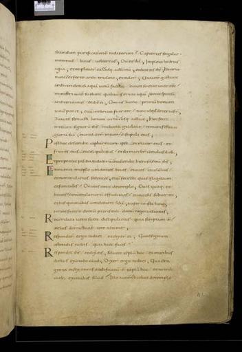 | Keywords: MCC-61050 Evangeliarium (Lebuïnuscodex) (229).jpg Artwork nl Anonymous Noordoost-Frankrijk Anonymous Rijnland Anonymous Maasland nl De kern van de boekband van de Lebuïnuscodex wordt gevormd door twee eikenhouten platten De rug en het achterplat zijn overtrokken met zeemleer Het voorplat is rijkelijk versierd met verguld zilversmeedwerk reliëfs van walrustand en verscheidene stenen De compositie van de bekleding van het voorplat wordt bepaald door een verguld zilveren filigraankruis Aan de uiteinden van de kruisarmen bevinden zich vierpassen met overhoeks vierkant eveneens met filigraan gedecoreerd Hiervan zijn er slechts twee bewaard gebleven en wel die aan de verticale kruisarmen Zij bevatten tevens nog de oorspronkelijke versiering bestaande uit een filigraanmedaillon met een pseudo-camee van respectievelijk een mannen- en een vrouwenhoofd in profiel Het snijpunt van het kruis wordt ingenomen door een ver vooruitstekend Bacchuskopje in chalcedoon te herkennen aan de kleine druiventrosjes in zijn haartooi Het kopje is gevat in een filigraanmedaillon welke op zijn beurt weer is geplaatst op een vierpas van filigraanwerk Op elk van de kruisarmen bevindt zich een ovale steen 'en cabochon' op een medaillon met filigraan Het filigraanwerk van kruis en sierstukken is in de vorm van visblazen In de ruimten tussen de kruisarmen zijn rechthoekige reliëfs van walrustand aangebracht met de vier evangelisten en hun symbool De reliëfs hebben de volgende afmetingen H 10 0 x B 5 5 cm Van links boven naar rechts onder betreft het Mattheus met de engel Johannes met de adelaar Marcus met de gevleugelde leeuw en Lucas met de gevleugelde os De figuren zijn paarsgewijs als elkaars spiegelbeeld ten opzichte van de middenas geplaatst Mattheus en Johannes zitten vrijwel geheel frontaal terwijl Marcus en Lucas meer in profiel zijn afgebeeld Qua opbouw verschillen de vier reliëfs nauwelijks van elkaar Binnen een rand van vierlobbige blaadjes verheffen zich twee zuilen met een basis een kapiteel en een dekplaat Hierop rust een rondboog geflankeerd door twee torens en afgedekt met een fronton dat boven Mattheus en Johannes boogvormig en boven Marcus en Lucas driehoekig is Onder deze overhuiving zitten de evangelisten gekleed in een lang gewaad en mantel met gekruiste benen aan een lessenaar hun blote voeten rustend op een bankje Allen zijn baardeloos en voorzien van een nimbus Voorts houden ze een pen in hun rechterhand terwijl hun linker op een boek ligt of gebarend is opgeheven Boven elk van de evangelisten verschijnt in de opening van het fronton zijn symbool met een spreukband Dit rijkelijk gedecoreerde middenveld wordt omlijst door sierbanden van verguld koper De opbouw van de sierlijsten is steeds dezelfde een opstaande smalle band die op regelmatige afstanden is voorzien van holten met aan weerszijden een brede strook voorzien van een gestanst motief Aan de lange zijden van de boekband bestaat het motief uit palmetten aan de korte zijden uit rozetten Van deze laatstgenoemde stroken ontbreekt steeds de buitenste rand Bij alle stroken met palmettenmotief wijzen de palmetten naar links met uitzondering van de buitenste strook rechtsboven die het motief in tegengestelde richting toont Verguld zilveren rozetten op de hoeken van het voorplat omgeven door een smalle rand van filigraanwerk met cirkelmotief en bekroond met een 'en cabochon' gezette steen completeren het geheel Van de rozet links onder ontbreekt de steen en is slechts de buitenste rand over Aan de voorzijde van de boekband bevinden zich nog de rudimenten van twee sluitingen between u'825' u'1000' u'1150' u'850' u'1199' u'1199' nl perkament eikenhout zilver goud koper walrustand chalcedoon glas leer Size 35 5 26 0 cm nl Hoogte 35 5cm Breedte 26 0cm Diepte 13 5cm Institution Museum Catharijneconvent object history exhibition history credit line nl Foto Museum Catharijneconvent Utrecht foto HetFotoAtelier Peter Rothengatter accession number Object number 61050 Inventory number ABM h1 place of creation https //www catharijneconvent nl/adlib/61050/ View this work on the website of Museum Catharijneconvent Museum Catharijneconvent Cc-zero <gallery> File MCC-61050_Evangeliarium_Lebuïnuscodex_ 11 jpg File MCC-61050_Evangeliarium_Lebuïnuscodex_ 172 jpg File MCC-61050_Evangeliarium_Lebuïnuscodex_ 212 jpg File MCC-61050_Evangeliarium_Lebuïnuscodex_ 61 jpg File MCC-61050_Evangeliarium_Lebuïnuscodex_ 12 jpg File MCC-61050_Evangeliarium_Lebuïnuscodex_ 213 jpg File MCC-61050_Evangeliarium_Lebuïnuscodex_ 56 jpg File MCC-61050_Evangeliarium_Lebuïnuscodex_ 232 jpg File MCC-61050_Evangeliarium_Lebuïnuscodex_ 93 jpg File MCC-61050_Evangeliarium_Lebuïnuscodex_ 99 jpg File MCC-61050_Evangeliarium_Lebuïnuscodex_ 184 jpg File MCC-61050_Evangeliarium_Lebuïnuscodex_ 64 jpg File MCC-61050_Evangeliarium_Lebuïnuscodex_ 299 jpg File MCC-61050_Evangeliarium_Lebuïnuscodex_ 86 jpg File MCC-61050_Evangeliarium_Lebuïnuscodex_ 260 jpg File MCC-61050_Evangeliarium_Lebuïnuscodex_ 159 jpg File MCC-61050_Evangeliarium_Lebuïnuscodex_ 247 jpg File MCC-61050_Evangeliarium_Lebuïnuscodex_ 180 jpg File MCC-61050_Evangeliarium_Lebuïnuscodex_ 121 jpg File MCC-61050_Evangeliarium_Lebuïnuscodex_ 315 jpg File MCC-61050_Evangeliarium_Lebuïnuscodex_ 284 jpg File MCC-61050_Evangeliarium_Lebuïnuscodex_ 33 jpg File MCC-61050_Evangeliarium_Lebuïnuscodex_ 44 jpg File MCC-61050_Evangeliarium_Lebuïnuscodex_ 258 jpg File MCC-61050_Evangeliarium_Lebuïnuscodex_ 237 jpg File MCC-61050_Evangeliarium_Lebuïnuscodex_ 20 jpg File MCC-61050_Evangeliarium_Lebuïnuscodex_ 220 jpg File MCC-61050_Evangeliarium_Lebuïnuscodex_ 279 jpg File MCC-61050_Evangeliarium_Lebuïnuscodex_ 183 jpg File MCC-61050_Evangeliarium_Lebuïnuscodex_ 60 jpg File MCC-61050_Evangeliarium_Lebuïnuscodex_ 166 jpg File MCC-61050_Evangeliarium_Lebuïnuscodex_ 97 jpg File MCC-61050_Evangeliarium_Lebuïnuscodex_ 71 jpg File MCC-61050_Evangeliarium_Lebuïnuscodex_ 132 jpg File MCC-61050_Evangeliarium_Lebuïn