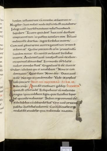 | Keywords: MCC-61090 Evangelistarium (Ansfriduscodex) (73).tif Artwork nl Anonymous Neder-Rijn Anonymous St Gallen OSB nl De kern van de boekband van de Ansfriduscodex wordt gevormd door twee eikenhouten platten Het voorplat bestaat uit een verdiept middenveld omgeven door een brede rand Het is beslagen met dunne verguld zilveren platen In het middenveld bevindt zich een verguld zilveren kruis met een verhoogd ingezwenkt achtkantig middenstuk en breed uitlopende armen Het kruis is versierd met filigraan en vijf halfedelstenen te weten een ronde steen van amethist en kornalijn op het snijpunt van de beide kruisarmen een lichtblauwe kwarts respectievelijk een agaat op de brede uiteinden van de verticale kruisarmen en twee nog niet nader bestemde stenen op de horizontale kruisarmen Het filigraanwerk bestaat uit cirkelvormige uitwaaierende ranken met bolletjes aan de uiteinden en in het midden hier en daar kleine rozetjes In de vier velden tussen de kruisarmen zijn steeds twee stenen in een diagonale lijn geplaatst Van boven naar beneden en van links naar rechts betreft het bergkristal en amethist amethist en kwarts kwarts de andere steen is verloren gegaan kwarts en amethist De brede rand rond het verdiepte middenveld is eveneens rijkelijk versierd Op de hoeken zijn geƫmailleerde medaillons met de evangelistensymbolen aangebracht De banderol die de figuren dragen vermeldt de naam van de evangelist Van links boven naar rechts onder betreft het de adelaar van Johannes de gevleugelde mens van Mattheus de gevleugelde leeuw van Marcus en de gevleugelde stier van Lucas Tussen de grote medaillons verdeeld over de lange en korte zijden van de rand bevinden zich zes kleinere geƫmailleerde medaillons Hiervan vormen de bovenste twee op de lange zijden tezamen de kroning van Maria links de gekroonde Moeder Gods en rechts de zegenende Christus Eronder bevinden zich twee medaillons waarop met wierookvaten zwaaiende engelen Op de korte zijden tonen de twee medaillons een afbeelding van een opspringend hert Op de rand bevinden zich verder nog vier alsengemmen met gegraveerde primitieve figuurtjes en zestien halfedelstenen waaronder kwarts amethist bergkristal jaspis en een lagensteen niccolo genaamd Zeven van deze stenen zijn voorzien van een gegraveerde mythologische voorstelling Zie Snijder 1932 voor een gedetailleerde beschrijving van de stenen en voorstellingen De rode rechthoekige jaspis in de onderrand bevat een koefische inscriptie die betekent 'Stel uw vertrouwen in Allah en zoek contact met den heer der getrouwen' Alle sierstukken alsmede de armen en de acht segmenten van het middenstuk van het kruis zijn omlijst met gedraaid gouddraad De rug en het achterplat zijn overtrokken met van oorsprong rood fluweel met rozenmotief Op het achterplat zijn vijf gegraveerde zilveren stukken aangebracht te weten vier ronde medaillons op de hoeken en in het midden een amandelvormige plaquette met een afbeelding van een bisschop omgeven door een rand met palmettenmotief In de buitenste rand staat de volgende Latijnse tekst gegraveerd ORNATU LAPIDUM RUTILANS AUROQUE POLITUM / PRAESULIS ANSFRIDI MARTINO MUNUS OBIVI vert 'versierd met flonkerende edelstenen en schitterend goud ben ik het boek een geschenk van bisschop Ansfridus aan Martinus de Utrechtse Martinuskerk' between u'950' u'1000' u'1000' u'1499' nl perkament eikenhout zilver goud kwarts amethist glas kornalijn bergkristal niccolo jaspis agaat fluweel Size 34 0 26 5 cm nl Hoogte 34 0cm Breedte 26 5cm Diepte 10 0cm Institution Museum Catharijneconvent object history exhibition history credit line nl Foto Museum Catharijneconvent Utrecht foto HetFotoAtelier Peter Rothengatter accession number Object number 61090 Inventory number ABM h2 place of creation https //www catharijneconvent nl/adlib/61090/ View this work on the website of Museum Catharijneconvent Museum Catharijneconvent Cc-zero <gallery> File MCC-61090_Evangelistarium_Ansfriduscodex_ 319 tif File MCC-61090_Evangelistarium_Ansfriduscodex_ 157 tif File MCC-61090_Evangelistarium_Ansfriduscodex_ 103 tif File MCC-61090_Evangelistarium_Ansfriduscodex_ 279 tif File MCC-61090_Evangelistarium_Ansfriduscodex_ 250 tif File MCC-61090_Evangelistarium_Ansfriduscodex_ 104 tif File MCC-61090_Evangelistarium_Ansfriduscodex_ 96 tif File MCC-61090_Evangelistarium_Ansfriduscodex_ 276 tif File MCC-61090_Evangelistarium_Ansfriduscodex_ 114 tif File MCC-61090_Evangelistarium_Ansfriduscodex_ 233 tif File MCC-61090_Evangelistarium_Ansfriduscodex_ 195 tif File MCC-61090_Evangelistarium_Ansfriduscodex_ 261 tif File MCC-61090_Evangelistarium_Ansfriduscodex_ 73 tif File MCC-61090_Evangelistarium_Ansfriduscodex_ 105 tif File MCC-61090_Evangelistarium_Ansfriduscodex_ 40 tif File MCC-61090_Evangelistarium_Ansfriduscodex_ 231 tif File MCC-61090_Evangelistarium_Ansfriduscodex_ 48 tif File MCC-61090_Evangelistarium_Ansfriduscodex_ 43 tif File MCC-61090_Evangelistarium_Ansfriduscodex_ 50 tif File MCC-61090_Evangelistarium_Ansfriduscodex_ 1 tif File MCC-61090_Evangelistarium_Ansfriduscodex_ 198 tif File MCC-61090_Evangelistarium_Ansfriduscodex_ 144 tif File MCC-61090_Evangelistarium_Ansfriduscodex_ 293 tif File MCC-61090_Evangelistarium_Ansfriduscodex_ 109 tif File MCC-61090_Evangelistarium_Ansfriduscodex_ 318 tif File MCC-61090_Evangelistarium_Ansfriduscodex_ 254 tif File MCC-61090_Evangelistarium_Ansfriduscodex_ 301 tif File MCC-61090_Evangelistarium_Ansfriduscodex_ 107 tif File MCC-61090_Evangelistarium_Ansfriduscodex_ 284 tif File MCC-61090_Evangelistarium_Ansfriduscodex_ 251 tif File MCC-61090_Evangelistarium_Ansfriduscodex_ 121 tif File MCC-61090_Evangelistarium_Ansfriduscodex_ 172 tif File MCC-61090_Evangelistarium_Ansfriduscodex_ 213 tif File MCC-61090_Evangelistarium_Ansfriduscodex_ 264 tif File MCC-61090_Evangelistarium_Ansfriduscodex_ 118 tif File MCC-61090_Evangelistarium_Ansfriduscodex_ 90 tif File MCC-61090_Evangelistarium_Ansfriduscodex_ 287 tif File MCC-61090_Evangelistarium_Ansfriduscodex_ 260 tif File MCC-61090_Ev