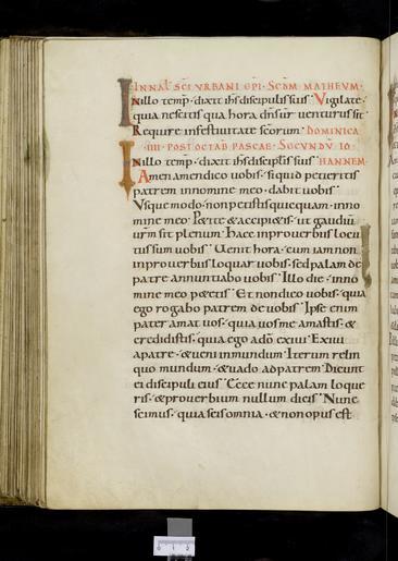 | Keywords: MCC-61090 Evangelistarium (Ansfriduscodex) (172).tif Artwork nl Anonymous Neder-Rijn Anonymous St Gallen OSB nl De kern van de boekband van de Ansfriduscodex wordt gevormd door twee eikenhouten platten Het voorplat bestaat uit een verdiept middenveld omgeven door een brede rand Het is beslagen met dunne verguld zilveren platen In het middenveld bevindt zich een verguld zilveren kruis met een verhoogd ingezwenkt achtkantig middenstuk en breed uitlopende armen Het kruis is versierd met filigraan en vijf halfedelstenen te weten een ronde steen van amethist en kornalijn op het snijpunt van de beide kruisarmen een lichtblauwe kwarts respectievelijk een agaat op de brede uiteinden van de verticale kruisarmen en twee nog niet nader bestemde stenen op de horizontale kruisarmen Het filigraanwerk bestaat uit cirkelvormige uitwaaierende ranken met bolletjes aan de uiteinden en in het midden hier en daar kleine rozetjes In de vier velden tussen de kruisarmen zijn steeds twee stenen in een diagonale lijn geplaatst Van boven naar beneden en van links naar rechts betreft het bergkristal en amethist amethist en kwarts kwarts de andere steen is verloren gegaan kwarts en amethist De brede rand rond het verdiepte middenveld is eveneens rijkelijk versierd Op de hoeken zijn geƫmailleerde medaillons met de evangelistensymbolen aangebracht De banderol die de figuren dragen vermeldt de naam van de evangelist Van links boven naar rechts onder betreft het de adelaar van Johannes de gevleugelde mens van Mattheus de gevleugelde leeuw van Marcus en de gevleugelde stier van Lucas Tussen de grote medaillons verdeeld over de lange en korte zijden van de rand bevinden zich zes kleinere geƫmailleerde medaillons Hiervan vormen de bovenste twee op de lange zijden tezamen de kroning van Maria links de gekroonde Moeder Gods en rechts de zegenende Christus Eronder bevinden zich twee medaillons waarop met wierookvaten zwaaiende engelen Op de korte zijden tonen de twee medaillons een afbeelding van een opspringend hert Op de rand bevinden zich verder nog vier alsengemmen met gegraveerde primitieve figuurtjes en zestien halfedelstenen waaronder kwarts amethist bergkristal jaspis en een lagensteen niccolo genaamd Zeven van deze stenen zijn voorzien van een gegraveerde mythologische voorstelling Zie Snijder 1932 voor een gedetailleerde beschrijving van de stenen en voorstellingen De rode rechthoekige jaspis in de onderrand bevat een koefische inscriptie die betekent 'Stel uw vertrouwen in Allah en zoek contact met den heer der getrouwen' Alle sierstukken alsmede de armen en de acht segmenten van het middenstuk van het kruis zijn omlijst met gedraaid gouddraad De rug en het achterplat zijn overtrokken met van oorsprong rood fluweel met rozenmotief Op het achterplat zijn vijf gegraveerde zilveren stukken aangebracht te weten vier ronde medaillons op de hoeken en in het midden een amandelvormige plaquette met een afbeelding van een bisschop omgeven door een rand met palmettenmotief In de buitenste rand staat de volgende Latijnse tekst gegraveerd ORNATU LAPIDUM RUTILANS AUROQUE POLITUM / PRAESULIS ANSFRIDI MARTINO MUNUS OBIVI vert 'versierd met flonkerende edelstenen en schitterend goud ben ik het boek een geschenk van bisschop Ansfridus aan Martinus de Utrechtse Martinuskerk' between u'950' u'1000' u'1000' u'1499' nl perkament eikenhout zilver goud kwarts amethist glas kornalijn bergkristal niccolo jaspis agaat fluweel Size 34 0 26 5 cm nl Hoogte 34 0cm Breedte 26 5cm Diepte 10 0cm Institution Museum Catharijneconvent object history exhibition history credit line nl Foto Museum Catharijneconvent Utrecht foto HetFotoAtelier Peter Rothengatter accession number Object number 61090 Inventory number ABM h2 place of creation https //www catharijneconvent nl/adlib/61090/ View this work on the website of Museum Catharijneconvent Museum Catharijneconvent Cc-zero <gallery> File MCC-61090_Evangelistarium_Ansfriduscodex_ 319 tif File MCC-61090_Evangelistarium_Ansfriduscodex_ 157 tif File MCC-61090_Evangelistarium_Ansfriduscodex_ 103 tif File MCC-61090_Evangelistarium_Ansfriduscodex_ 279 tif File MCC-61090_Evangelistarium_Ansfriduscodex_ 250 tif File MCC-61090_Evangelistarium_Ansfriduscodex_ 104 tif File MCC-61090_Evangelistarium_Ansfriduscodex_ 96 tif File MCC-61090_Evangelistarium_Ansfriduscodex_ 276 tif File MCC-61090_Evangelistarium_Ansfriduscodex_ 114 tif File MCC-61090_Evangelistarium_Ansfriduscodex_ 233 tif File MCC-61090_Evangelistarium_Ansfriduscodex_ 195 tif File MCC-61090_Evangelistarium_Ansfriduscodex_ 261 tif File MCC-61090_Evangelistarium_Ansfriduscodex_ 73 tif File MCC-61090_Evangelistarium_Ansfriduscodex_ 105 tif File MCC-61090_Evangelistarium_Ansfriduscodex_ 40 tif File MCC-61090_Evangelistarium_Ansfriduscodex_ 231 tif File MCC-61090_Evangelistarium_Ansfriduscodex_ 48 tif File MCC-61090_Evangelistarium_Ansfriduscodex_ 43 tif File MCC-61090_Evangelistarium_Ansfriduscodex_ 50 tif File MCC-61090_Evangelistarium_Ansfriduscodex_ 1 tif File MCC-61090_Evangelistarium_Ansfriduscodex_ 198 tif File MCC-61090_Evangelistarium_Ansfriduscodex_ 144 tif File MCC-61090_Evangelistarium_Ansfriduscodex_ 293 tif File MCC-61090_Evangelistarium_Ansfriduscodex_ 109 tif File MCC-61090_Evangelistarium_Ansfriduscodex_ 318 tif File MCC-61090_Evangelistarium_Ansfriduscodex_ 254 tif File MCC-61090_Evangelistarium_Ansfriduscodex_ 301 tif File MCC-61090_Evangelistarium_Ansfriduscodex_ 107 tif File MCC-61090_Evangelistarium_Ansfriduscodex_ 284 tif File MCC-61090_Evangelistarium_Ansfriduscodex_ 251 tif File MCC-61090_Evangelistarium_Ansfriduscodex_ 121 tif File MCC-61090_Evangelistarium_Ansfriduscodex_ 172 tif File MCC-61090_Evangelistarium_Ansfriduscodex_ 213 tif File MCC-61090_Evangelistarium_Ansfriduscodex_ 264 tif File MCC-61090_Evangelistarium_Ansfriduscodex_ 118 tif File MCC-61090_Evangelistarium_Ansfriduscodex_ 90 tif File MCC-61090_Evangelistarium_Ansfriduscodex_ 287 tif File MCC-61090_Evangelistarium_Ansfriduscodex_ 260 tif File MCC-61090_E