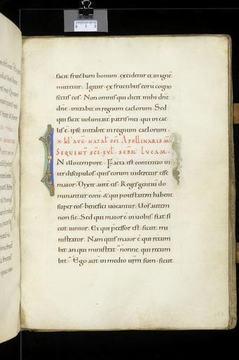 | Keywords: MCC-68515 Evangelistarium (Bernulphuscodex) (353).jpg Artwork nl Anonymous Zuid-Duitsland Reichenau OSB nl De kern van de boekband van de Bernulphuscodex wordt gevormd door twee eikenhouten platten De rug en het achterplat zijn overtrokken met zeemleer Het voorplat bestaat uit een enigszins verdiept rechthoekig middenveld omgeven door een brede rand In het middenveld bevindt zich een verguld zilveren filigraankruis met een verhoogd ingezwenkt achtkantig middenstuk en breed uitlopende armen Het filigraanwerk bestaat uit cirkelvormige uitwaaierende ranken met bolletjes aan de uiteinden en in het midden hier en daar kleine rozetjes Op het snijpunt van beide kruisarmen bevindt zich een ovale zwartblauw en grijs gekleurde onyx in de bovenarm een klassiek gesneden vrouwenkop van chalcedoon op de rechterarm een stuk donkerrood glas en beneden een bruin gestreepte agaat De bekleding van de linker kruisarm ontbreekt De lager gelegen velden tussen de kruisarmen zijn bekleed met dunne gouden platen Langs de randen hiervan is een parelrandje gestanst In het midden van de velden bevindt zich een medaillon met email-cloisonné De bovenste twee zijn voorzien van een diagonaal patroon met witte getrapte vierkantjes met rode stip tegen een donkerblauwe achtergrond Op de onderste twee is een stervormig respectievelijk concentrisch patroon aangebracht De aldaar toegepaste kleuren zijn translucide groen opaak wit geel en bruinpaars In de buitenste hoeken van de lager gelegen velden zijn ronde stenen in een vierkante zetting aangebracht Hiervan is slechts de opaal in de rechter bovenhoek bewaard gebleven In de overige hoeken is alleen nog de vierkante uitsparing te zien De brede rand is overtrokken met verguld zilveren stroken met grote rozetten die van elkaar gescheiden zijn door vier kleine stippelroosjes tussen twee evenwijdig lopende parelrandjes Aan de korte zijden van het voorplat ontbreekt de rozettenrand; slechts de spijkers waarmee ze waren vastgemaakt zijn nog te zien Aan de lange zijde ontbreekt een stuk uit de rand en wel links onder het midden Verdeeld over de nog aanwezige rozetten zijn vier alsengemmen en twee zilveren medaillons aangebracht Laatstgenoemde zijn versierd met een gezicht en bladwerk Vier medaillons met de evangelistensymbolen zijn op de hoeken van de brede rand aangebracht van links boven naar rechts onder betreft het de adelaar van Johannes de engel van Mattheus de gevleugelde os van Lucas en de gevleugelde leeuw van Marcus De banderol die de figuren dragen vermeldt de naam van de betreffende evangelist De naam van Marcus staat in spiegelbeeld Het woord Lucas is over andere letters gekrast De armen van het kruis de acht segmenten van het middenstuk alsmede de sierstukken zijn omlijst met een fijn geparelde gouden filigraandraad Techniek nog in te vullen volgens Korteweg zijn de medaillons met symbolen van Marcus en Lucas uit een graveerplaat gezaagd; rozetten in rand gestanst De sierlijst met rozetten is met behulp van kleine spijkertjes op de houten rand bevestigd Staat nog in te vullen Volgens Korteweg 1979 waren de medaillons met de symbolen van Johannes en Mattheus oorspronkelijk geëmailleerd De velden vertonen nog sporen van gekleurd email Volgens Steenbock 1965 waren het juist de medaillons met Lucas en Marcus Volgens Korteweg 1979 is het verguldsel van de stroken met rozetten enigszins afgesleten Onder de linkerzijde van het metaalwerk van het voorplat bevindt zich rode zijde; aan de smalle zijden van het voorplat ontbreken de rozettenranden slechts de spijkers waarmee ze waren vastgemaakt zijn nog te zien Aan de lange zijde links onder het midden ontbreekt een stuk uit de rand Van het chalcedonen vrouwenkopje ontbreekt de neus en is de kin beschadigd between u'1040' u'1200' u'1050' u'1499' nl perkament eikenhout zilver goud chalcedoon onyx glas agaat opaal Size 31 5 24 0 cm nl Hoogte 31 5cm Breedte 24 0cm Diepte 9 8cm Institution Museum Catharijneconvent object history exhibition history credit line nl Foto Museum Catharijneconvent Utrecht foto HetFotoAtelier Peter Rothengatter accession number Object number 68515 Inventory number ABM h3 place of creation https //www catharijneconvent nl/adlib/68515/ View this work on the website of Museum Catharijneconvent Museum Catharijneconvent Cc-zero <gallery> File MCC-68515_Evangelistarium_Bernulphuscodex_ 353 jpg File MCC-68515_Evangelistarium_Bernulphuscodex_ 412 jpg File MCC-68515_Evangelistarium_Bernulphuscodex_ 160 jpg File MCC-68515_Evangelistarium_Bernulphuscodex_ 6 jpg File MCC-68515_Evangelistarium_Bernulphuscodex_ 393 jpg File MCC-68515_Evangelistarium_Bernulphuscodex_ 89 jpg File MCC-68515_Evangelistarium_Bernulphuscodex_ 270 jpg File MCC-68515_Evangelistarium_Bernulphuscodex_ 425 jpg File MCC-68515_Evangelistarium_Bernulphuscodex_ 104 jpg File MCC-68515_Evangelistarium_Bernulphuscodex_ 291 jpg File MCC-68515_Evangelistarium_Bernulphuscodex_ 398 jpg File MCC-68515_Evangelistarium_Bernulphuscodex_ 339 jpg File MCC-68515_Evangelistarium_Bernulphuscodex_ 65 jpg File MCC-68515_Evangelistarium_Bernulphuscodex_ 403 jpg File MCC-68515_Evangelistarium_Bernulphuscodex_ 311 jpg File MCC-68515_Evangelistarium_Bernulphuscodex_ 159 jpg File MCC-68515_Evangelistarium_Bernulphuscodex_ 347 jpg File MCC-68515_Evangelistarium_Bernulphuscodex_ 453 jpg File MCC-68515_Evangelistarium_Bernulphuscodex_ 289 jpg File MCC-68515_Evangelistarium_Bernulphuscodex_ 273 jpg File MCC-68515_Evangelistarium_Bernulphuscodex_ 286 jpg File MCC-68515_Evangelistarium_Bernulphuscodex_ 236 jpg File MCC-68515_Evangelistarium_Bernulphuscodex_ 447 jpg File MCC-68515_Evangelistarium_Bernulphuscodex_ 227 jpg File MCC-68515_Evangelistarium_Bernulphuscodex_ 110 jpg File MCC-68515_Evangelistarium_Bernulphuscodex_ 139 jpg File MCC-68515_Evangelistarium_Bernulphuscodex_ 276 jpg File MCC-68515_Evangelistarium_Bernulphuscodex_ 10 jpg File MCC-68515_Evangelistarium_Bernulphuscodex_ 325 jpg File MCC-68515_Evangelistarium_Bernulphuscodex_ 154 jpg File MCC-68515_