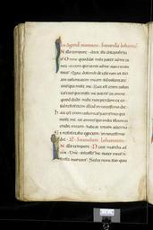 | Keywords: MCC-68515 Evangelistarium (Bernulphuscodex) (444).jpg Artwork nl Anonymous Zuid-Duitsland Reichenau OSB nl De kern van de boekband van de Bernulphuscodex wordt gevormd door twee eikenhouten platten De rug en het achterplat zijn overtrokken met zeemleer Het voorplat bestaat uit een enigszins verdiept rechthoekig middenveld omgeven door een brede rand In het middenveld bevindt zich een verguld zilveren filigraankruis met een verhoogd ingezwenkt achtkantig middenstuk en breed uitlopende armen Het filigraanwerk bestaat uit cirkelvormige uitwaaierende ranken met bolletjes aan de uiteinden en in het midden hier en daar kleine rozetjes Op het snijpunt van beide kruisarmen bevindt zich een ovale zwartblauw en grijs gekleurde onyx in de bovenarm een klassiek gesneden vrouwenkop van chalcedoon op de rechterarm een stuk donkerrood glas en beneden een bruin gestreepte agaat De bekleding van de linker kruisarm ontbreekt De lager gelegen velden tussen de kruisarmen zijn bekleed met dunne gouden platen Langs de randen hiervan is een parelrandje gestanst In het midden van de velden bevindt zich een medaillon met email-cloisonné De bovenste twee zijn voorzien van een diagonaal patroon met witte getrapte vierkantjes met rode stip tegen een donkerblauwe achtergrond Op de onderste twee is een stervormig respectievelijk concentrisch patroon aangebracht De aldaar toegepaste kleuren zijn translucide groen opaak wit geel en bruinpaars In de buitenste hoeken van de lager gelegen velden zijn ronde stenen in een vierkante zetting aangebracht Hiervan is slechts de opaal in de rechter bovenhoek bewaard gebleven In de overige hoeken is alleen nog de vierkante uitsparing te zien De brede rand is overtrokken met verguld zilveren stroken met grote rozetten die van elkaar gescheiden zijn door vier kleine stippelroosjes tussen twee evenwijdig lopende parelrandjes Aan de korte zijden van het voorplat ontbreekt de rozettenrand; slechts de spijkers waarmee ze waren vastgemaakt zijn nog te zien Aan de lange zijde ontbreekt een stuk uit de rand en wel links onder het midden Verdeeld over de nog aanwezige rozetten zijn vier alsengemmen en twee zilveren medaillons aangebracht Laatstgenoemde zijn versierd met een gezicht en bladwerk Vier medaillons met de evangelistensymbolen zijn op de hoeken van de brede rand aangebracht van links boven naar rechts onder betreft het de adelaar van Johannes de engel van Mattheus de gevleugelde os van Lucas en de gevleugelde leeuw van Marcus De banderol die de figuren dragen vermeldt de naam van de betreffende evangelist De naam van Marcus staat in spiegelbeeld Het woord Lucas is over andere letters gekrast De armen van het kruis de acht segmenten van het middenstuk alsmede de sierstukken zijn omlijst met een fijn geparelde gouden filigraandraad Techniek nog in te vullen volgens Korteweg zijn de medaillons met symbolen van Marcus en Lucas uit een graveerplaat gezaagd; rozetten in rand gestanst De sierlijst met rozetten is met behulp van kleine spijkertjes op de houten rand bevestigd Staat nog in te vullen Volgens Korteweg 1979 waren de medaillons met de symbolen van Johannes en Mattheus oorspronkelijk geëmailleerd De velden vertonen nog sporen van gekleurd email Volgens Steenbock 1965 waren het juist de medaillons met Lucas en Marcus Volgens Korteweg 1979 is het verguldsel van de stroken met rozetten enigszins afgesleten Onder de linkerzijde van het metaalwerk van het voorplat bevindt zich rode zijde; aan de smalle zijden van het voorplat ontbreken de rozettenranden slechts de spijkers waarmee ze waren vastgemaakt zijn nog te zien Aan de lange zijde links onder het midden ontbreekt een stuk uit de rand Van het chalcedonen vrouwenkopje ontbreekt de neus en is de kin beschadigd between u'1040' u'1200' u'1050' u'1499' nl perkament eikenhout zilver goud chalcedoon onyx glas agaat opaal Size 31 5 24 0 cm nl Hoogte 31 5cm Breedte 24 0cm Diepte 9 8cm Institution Museum Catharijneconvent object history exhibition history credit line nl Foto Museum Catharijneconvent Utrecht foto HetFotoAtelier Peter Rothengatter accession number Object number 68515 Inventory number ABM h3 place of creation https //www catharijneconvent nl/adlib/68515/ View this work on the website of Museum Catharijneconvent Museum Catharijneconvent Cc-zero <gallery> File MCC-68515_Evangelistarium_Bernulphuscodex_ 353 jpg File MCC-68515_Evangelistarium_Bernulphuscodex_ 412 jpg File MCC-68515_Evangelistarium_Bernulphuscodex_ 160 jpg File MCC-68515_Evangelistarium_Bernulphuscodex_ 6 jpg File MCC-68515_Evangelistarium_Bernulphuscodex_ 393 jpg File MCC-68515_Evangelistarium_Bernulphuscodex_ 89 jpg File MCC-68515_Evangelistarium_Bernulphuscodex_ 270 jpg File MCC-68515_Evangelistarium_Bernulphuscodex_ 425 jpg File MCC-68515_Evangelistarium_Bernulphuscodex_ 104 jpg File MCC-68515_Evangelistarium_Bernulphuscodex_ 291 jpg File MCC-68515_Evangelistarium_Bernulphuscodex_ 398 jpg File MCC-68515_Evangelistarium_Bernulphuscodex_ 339 jpg File MCC-68515_Evangelistarium_Bernulphuscodex_ 65 jpg File MCC-68515_Evangelistarium_Bernulphuscodex_ 403 jpg File MCC-68515_Evangelistarium_Bernulphuscodex_ 311 jpg File MCC-68515_Evangelistarium_Bernulphuscodex_ 159 jpg File MCC-68515_Evangelistarium_Bernulphuscodex_ 347 jpg File MCC-68515_Evangelistarium_Bernulphuscodex_ 453 jpg File MCC-68515_Evangelistarium_Bernulphuscodex_ 289 jpg File MCC-68515_Evangelistarium_Bernulphuscodex_ 273 jpg File MCC-68515_Evangelistarium_Bernulphuscodex_ 286 jpg File MCC-68515_Evangelistarium_Bernulphuscodex_ 236 jpg File MCC-68515_Evangelistarium_Bernulphuscodex_ 447 jpg File MCC-68515_Evangelistarium_Bernulphuscodex_ 227 jpg File MCC-68515_Evangelistarium_Bernulphuscodex_ 110 jpg File MCC-68515_Evangelistarium_Bernulphuscodex_ 139 jpg File MCC-68515_Evangelistarium_Bernulphuscodex_ 276 jpg File MCC-68515_Evangelistarium_Bernulphuscodex_ 10 jpg File MCC-68515_Evangelistarium_Bernulphuscodex_ 325 jpg File MCC-68515_Evangelistarium_Bernulphuscodex_ 154 jpg File MCC-68515_