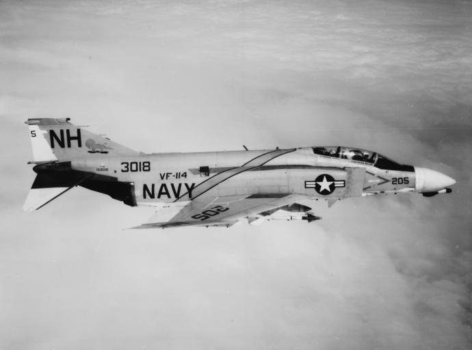| Keywords: McDonnell F-4B Phantom II of VF-114 over Vietnam in 1968.jpg A U S Navy McDonnell F-4B-26-MC Phantom II BuNo 153018 of Fighter Squadron 114 VF-114 Aardvarks n a combat mission over North Vietnam VF-114 was assigned to Carrier Air Wing 11 CVW-11 aboard the aircraft carrier USS Kitty Hawk CVA-63 for a deployment to Vietnam from 18 November 1967 to 28 June 1968 Official U S Navy photo http //www history navy mil/our-collections/photography/numerical-list-of-images/nhhc-series/nh-series/USN-1130000/USN-1130692 html USN 1130692 from the U S Navy http //www history navy mil Naval History and Heritage Command 1968-04-15 U S Navy thumb left PD-USGov-Military-Navy F-4B Phantom II Aerial photographs of F-4 Phantom II in flight Fighter Squadron 114 United States Navy Vietnam War in April 1968 |