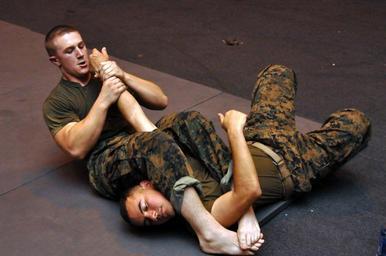 | Keywords: MCMAP grappling armbar.jpg en U S Marine Corps Lance Cpl Ryan Whitted left applies an arm bar to his grappling partner during Marine Corps Martial Arts Program MCMAP training aboard the aircraft carrier USS Ronald Reagan CVN 76 in the Pacific Ocean July 16 2010 Marines from the “Death Rattlers” of Marine Fighter Attack Squadron 323 are aboard Reagan as part of Carrier Air Wing 14 The ship is participating in Rim of the Pacific 2010 the world's largest multinational maritime exercise DoD photo by Mass Communication Specialist 3rd Class Stephen M Votaw U S Navy/Released 2010-07-16 17 00 35 http //www defenseimagery mil/imagery html guid adfe0dc4951eba06d4f9dd6118ebe8e8cc8b85e9 www defenseimagery mil MC3 Stephen M Votaw PD-USGov Uploaded with UploadWizard Armbars MARPAT in 2010 United States Marine Corps Martial Arts Program |