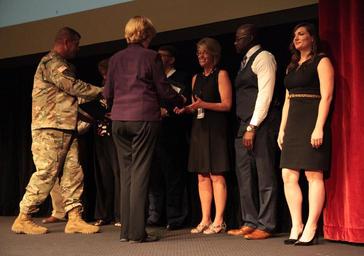 | Keywords: imcom installation management command installationmanagementcommand fort sam houston fortsamhouston line of effort 1 lineofeffort1 professional development professionaldevelopment professional development program professionaldevelopmentprogram awards presentation awardspresentation employee recognition employeerecognition employees people indoor gown The IMCOM G9 Family and Morale, Welfare and Recreation directorate leaders are committed to helping employees grow in their careers, in support of the command's people first priority. During this professional development program event, director Stephanie Hoehne presented awards to employees, May 3, 2016, at the Fort Sam Houston Theatre on Joint Base San Antonio, Texas. (U.S. Army photo by Jessica Ryan.) The IMCOM G9 Family and Morale, Welfare and Recreation directorate leaders are committed to helping employees grow in their careers, in support of the command's people first priority. During this professional development program event, director Stephanie Hoehne presented awards to employees, May 3, 2016, at the Fort Sam Houston Theatre on Joint Base San Antonio, Texas. (U.S. Army photo by Jessica Ryan.) |