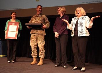 Keywords: imcom installation management command installationmanagementcommand fort sam houston fortsamhouston line of effort 1 lineofeffort1 professional development professionaldevelopment professional development program professionaldevelopmentprogram awards presentation awardspresentation employee recognition employeerecognition employees indoor The IMCOM G9 Family and Morale, Welfare and Recreation directorate leaders are committed to helping employees grow in their careers, in support of the command's people first priority. During this professional development program event, director Stephanie Hoehne presented awards to employees, May 3, 2016, at the Fort Sam Houston Theatre on Joint Base San Antonio, Texas. (U.S. Army photo by Jessica Ryan.) The IMCOM G9 Family and Morale, Welfare and Recreation directorate leaders are committed to helping employees grow in their careers, in support of the command's people first priority. During this professional development program event, director Stephanie Hoehne presented awards to employees, May 3, 2016, at the Fort Sam Houston Theatre on Joint Base San Antonio, Texas. (U.S. Army photo by Jessica Ryan.)