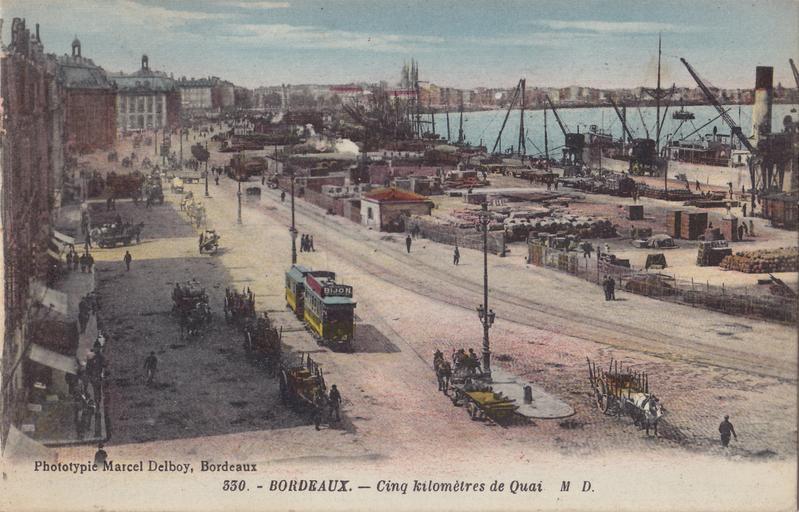 | Keywords: MD 330 - BORDEAUX - Cinq kilomètres de Quai.jpg fr Carte postale ancienne éditée par Marcel Delboy MD à Bordeaux n°330 <br />BORDEAUX - Cinq kilomètres de Quai b 1925-09-12 own archive Claude_villetaneuse scanner Custom license marker 2014 02 23 Anonymous-EU PD-1923 Uploaded with UploadWizard Historical images of Bordeaux harbour Historical trams in Bordeaux | ||||