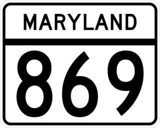 Keywords: MD Route 869.svg A Maryland Route 869 route marker Made according to http //www marylandroads com/businesswithsha/bizstdsspecs/desmanualstdpub/publicationsonline/oots/pdf/M1-5 pdf using Inkscape Jeff02 Maryland State Highway shields 869