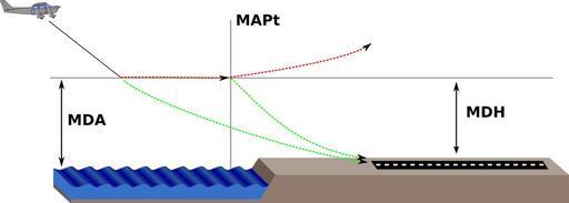 | Keywords: MDA and MDH.svg Instrument approach MDA minimum descent altitude MDH minimum descent height MAPt missed approach point green line runway in sight †’ continue descent below MDA/H red line runway not in sight before reaching MAPt †’ hold altitude when reaching MAPt †’ missed approach/go around Mindestsinkflughöhe MDA minimum descent altitude MDH minimum descent height MAPt missed approach point Fehlanflugpunkt grüne Linie Landebahn/-befeuerung in Sicht †’ weiter sinken rote Linie Landebahn/-befeuerung noch nicht in Sicht MAPt noch nicht erreicht †’ Höhe halten wenn MAPt erreicht und Landebahn/-befeuerung noch nicht in Sicht †’ missed approach/Durchstarten own incorporating C 172 line drawing svg 2010-04-10 C 172 line drawing svg Werneuchen everything else El Grafo <span class signature-talk >talk</span> Decision altitude and decision height svg Decision altitude and decision height CC-0 Air navigation diagrams Aircraft altitude diagrams Files by User El Grafo Landings in aviation ILS |