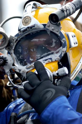 | Keywords: MDSU 2 aboard USNS Grasp 110721-N-EF447-130.jpg en Chief Petty Officer Bryan Williams Navy diver stationed with Mobile Diving and Salvage Unit 2 adjusts his helmet aboard the Military Sealift Command rescue and salvage ship USNS Grasp Grasp MDSU-2 and Navy archeologist scientist and historians are currently deployed to the North Sea to conduct diving expeditions Photo by Petty Officer 1st Class Ja'lon A Rhinehart 2011-07-21 Petty Officer 2nd Class Ja'Lon Rhinehart https //www dvidshub net/image/432947 110721-N-EF447-130 2011-07-25 02 49 NORTH SEA USAFRICOM AT SEA PD-USGov-Military-Navy United States Navy Mobile Diving and Salvage Unit Two Images from DoD uploaded by Fæ Diving helmets |