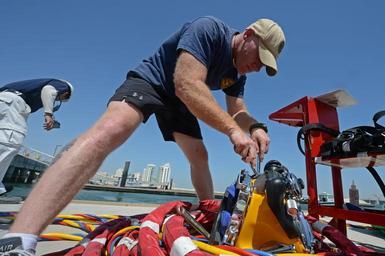 | Keywords: MDSU surface supply dive 130923-N-RB579-131.jpg en Navy Diver 2nd Class Ken Stark assigned to Commander Task Group CTG 56 1 conducts a pre-dive inspection of a Mark 21 diving helmet prior to surface supply diving operations CTG 56 1 conducts mine countermeasure explosive ordnance disposal salvage diving and force protection operations throughout the 5th Fleet area of responsibility U S Navy photo by Mass Communication Specialist 2nd Class Joshua Davies/Released 2013-09-23 Petty Officer 3rd Class Joshua Davies https //www dvidshub net/image/1025642 130923-N-RB579-131 2013-09-25 12 06 NAVAL SUPPORT ACTIVITY BAHRAIN BH PD-USGov-Military-Navy Naval Support Activity Bahrain Images from DoD uploaded by Fæ |