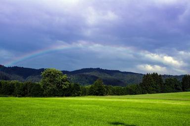 Keywords: meadow clouds rainbow natural spectacle mood sky grass