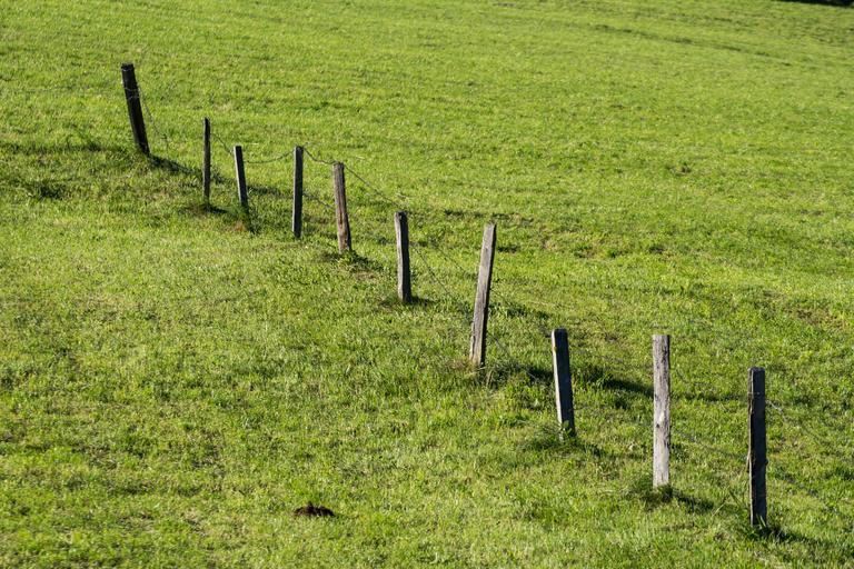 Keywords: meadow fence nature wood fence pasture idyll grass agriculture summer barbed wire