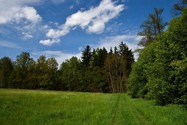 Keywords: meadow forest grass sky blue path landscape spring southern bohemia vernal blue sky nature clouds spring landscape