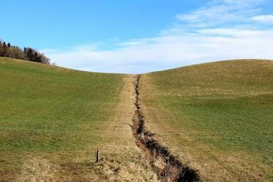 Keywords: meadow hill channel division clouds sky grass nature