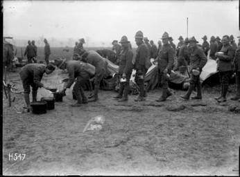 | Keywords: blackandwhite monochrome outdoor black and white New Zealand soldiers queuing up with their mess tins for a meal break in camp near Louvencourt, France, during World War I. A soldier ladles food out of three large pots. Photograph taken 30 April 1918 by Henry Armytage Sanders. Inscriptions: Inscribed - Photographer's title on negative -bottom left: H547. Quantity: 1 b&w original negative(s). Physical Description: Dry plate glass negative 4.5 x 6.5 inches Meal time for New Zealand troops, Louvencourt. Royal New Zealand Returned and Services' Association :New Zealand official negatives, World War 1914-1918. Ref: 1/2-013162-G. Alexander Turnbull Library, Wellington, New Zealand. natlib.govt.nz/records/23076048 New Zealand soldiers queuing up with their mess tins for a meal break in camp near Louvencourt, France, during World War I. A soldier ladles food out of three large pots. Photograph taken 30 April 1918 by Henry Armytage Sanders. Inscriptions: Inscribed - Photographer's title on negative -bottom left: H547. Quantity: 1 b&w original negative(s). Physical Description: Dry plate glass negative 4.5 x 6.5 inches Meal time for New Zealand troops, Louvencourt. Royal New Zealand Returned and Services' Association :New Zealand official negatives, World War 1914-1918. Ref: 1/2-013162-G. Alexander Turnbull Library, Wellington, New Zealand. natlib.govt.nz/records/23076048 |