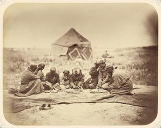 | Keywords: Meals of Central Asians. Kyrgyz Meal WDL11117.png Artwork ru Кун Александ Людвигович 1840 1888 гг fr Kun Aleksandr L 1840-1888 en Kun Aleksandr L 1840-1888 zh 亚历山大·L· ,1840-1888 年 pt Kun Aleksandr L 1840-1888 ar كُن، ألكسندر ل ، 1840-1888 es Kun Aleksandr L 1840-1888 ru Еда жителей С едней Азии Ки гизы за едой fr Repas d'habitants d'Asie Centrale Repas kirghize en Meals of Central Asians Kyrgyz Meal zh 中亚 区的饮食:吉尔吉斯人的膳食 pt Refeições dos povos da Ásia Central Refeição quirguiz ar وجبات سكان وسط آسيا وجبة قرغيزية ru Эта фотог афия входит в этног афическую часть <em> Ту кестанского альбома </em><em></em> всесто оннего исследования Цент альной Азии п едп инятого после того как в 1860-х годах в егионе установилось господство Российской импе ии Альбом созданный по аспо яжению гене ала Константина Пет овича фон Кауфмана 1818 1882 годы пе вого гене ал-губе нато а оссийского Ту кестана состоит из четы ех частей в шести томах «Часть а хеологическая» два тома «Часть этног афическая» два тома «Часть п омысловая» один том и «Часть исто ическая» один том Основным составителем альбома был оссийский востоковед Александ Людвигович Кун аботавший совместно с иколаем Венедиктовичем Богаевским В альбоме п едставлено около 1200 фотог афий а также а хитекту ные планы аква ельные исунки и ка ты «Часть этног афическая» включает в себя 491отдельную фотог афию на 163 листах а фотог афиях изоб ажены п едставители азличных на одов егиона листы 1 33 повседневная жизнь и итуалы листы 34 91 а также виды де евень и го одов уличные то говцы и комме ческая деятельность листы 92 163 <br>Еда и напитки; Этног афические фотог афии; Ки гизский; Фотог афические исследования fr Cette photographie est extraite de la partie ethnographique de l'<em>Album du Turkestan</em> étude visuelle complète de l'Asie centrale entreprise après que l'Empire russe prit le contrôle de la région dans les années 1860 Commandé par le général Konstantin Petrovich von Kaufman 1818 1882 premier gouverneur général du Turkestan russe l'album est composé de six volumes en quatre parties la partie archéologique deux volumes la partie ethnologique deux volumes la partie sur les métiers un volume et la partie historique un volume L'album fut essentiellement compilé par l'orientaliste russe Aleksandr L Kun assisté de Nikolai V Bogaevskii Il comporte près de 1200 photographies et inclut également des plans architecturaux des dessins à l'aquarelle et des cartes La partie ethnographique compte 491 photographies sur 163 planches montrant des individus des différentes peuplades de la région planches 1 à 33 des scènes de la vie quotidienne et des rites planches 34 à 91 ainsi que des vues de villages et de villes de vendeurs ambulants et d'activités commerciales planches 92 à 163 <br>Gastronomie et boissons; Photographies ethnographiques; Kirghizie; Inventaires photographiques en This photograph is from the ethnographical part of <em>Turkestan Album</em><em> </em>a comprehensive visual survey of Central Asia undertaken after imperial Russia assumed control of the region in the 1860s Commissioned by General Konstantin Petrovich von Kaufman 1818 82 the first governor-general of Russian Turkestan the album is in four parts spanning six volumes Archaeological Part two volumes ; Ethnographic Part two volumes ; Trades Part one volume ; and Historical Part one volume The principal compiler was Russian Orientalist Aleksandr L Kun who was assisted by Nikolai V Bogaevskii The album contains some 1 200 photographs along with architectural plans watercolor drawings and maps The Ethnographic Part includes 491 individual photographs on 163 plates The photographs show individuals representing the different peoples of the region Plates 1 33 ; daily life and rituals Plates 34 91 ; and views of villages and cities street vendors and commercial activities Plates 92 163 <br>Eating and drinking; Ethnographic photographs; Kyrgyz; Photographic surveys zh 这张照片出自<em> 其斯 相册 </em><em> </em>的民族部分,该相册是俄罗斯 国 19 世纪 60 年代取得中亚控制 后, 手制 的 部针对该 区的综合 图像调查记录 相册由俄罗斯驻 其斯 (俄罗斯 国中亚属 的名称)首任 康斯 丁·彼得罗维奇·凡· 夫曼(Konstantin Petrovich von Kaufman,1818 82 年)将军赞助完成,共分六卷,四个部分: 古部分 (两卷); 民族部分 (两卷); 贸易部分 ( 卷)和 历史部分 ( 卷) 相册的主要编纂人是俄罗斯 方学 亚历山大·L· Aleksandr L Kun 亚历山大是 尼可莱·V·柏盖维斯基 Nikolai V Bogaevskii 的协助下完成相册的编纂 相册共含 1200 张照片,另 建筑平 图 水彩画和 图 民族部分 包括 491 张个人照,占 163 页 照片展现了该 区各个民族的人物形象(1-33 页) 日常生活和礼仪(34-91 页)以及城市 庄 街头摊贩和商业活动 景(92-163 页) <br>饮食; 民族照片; 吉尔吉斯; 摄影勘察 品 pt Esta fotografia f