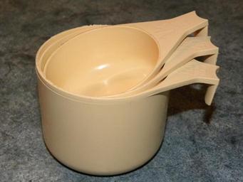 Keywords: MeasuringCups2.JPG en 3 plastic measuring cups labelled 1 cup 250 ml 1/2 cup and 1/3 cup own Vicki Nunn 2010-09-21 Food preparation Measuring cups Beige objects