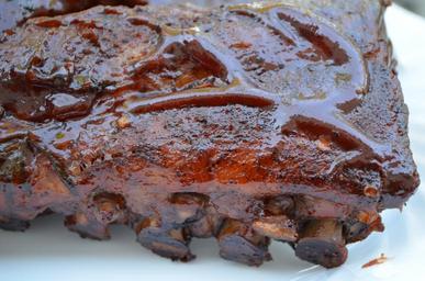Keywords: Close up of babyback ribs bbq meat grill pork charcoal ribs