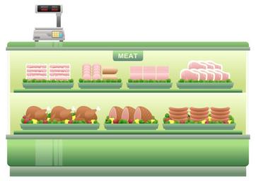 Keywords: meat counter supermarket shelf meats ham steak salami bacon sausage chicken scale products goods clip art supermarket retail shopping merchandise