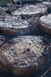 Keywords: Meat on grill.jpg en grill meat pork bbq barbeque steak food smoked own Rembson 2009-04-11 Löderup Scania Sweden Barbecued food