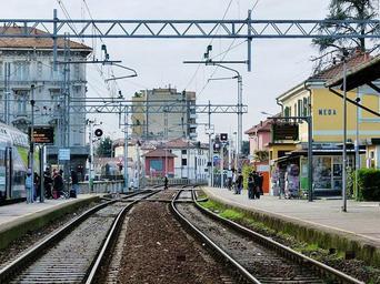Keywords: 45 40N 9 10E Meda railway station is a railway station in Italy. It serves the town of Meda. Opened October 18, 1879. attribution: Massimiliano Mariani