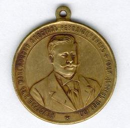 | Keywords: Medal Gotse Delchev..jpg Medal Commemorative of Gotse Delchev issued in 1904 in Bulgaria on behalf of the Internal Macedonian Revolutionary Organisation Circular bronze medal with loop for ribbon suspension; The face with a head and shoulders portrait of Gotse Delchev facing right circumscribed; The fearless macedonian apostle Gotse Delchev 1904 ; The reverse see other versions with on the right a seated female figure representative of Macedonia her right arm raised in supplication a broken chain hanging from her wrist a shield bearing the arms of Macedonia to her left and to the left a standing female figure representative of Bulgaria a shield bearing the arms of Bulgaria held in her right hand her left arm raised holding a shield to protect ˜Macedonia ™ signed Dimitar Diolev from Kalofer and circumscribed Bulgaria preserve the freedom of Macedonia ; ribbon lacking The medal was issued by the IMRO in 1904 to commemorate its leader Gotse Delchev 1872-1903 who had been killed in a skirmish with Ottoman Turkish police on 4 May 1903 www medal-medaille com 1904 Dimitar Diolev Kalofer Bulgaria Reverse side thumb left 100px PD-old Things named after Gotse Delchev Medals of Bulgaria 1904 medals |