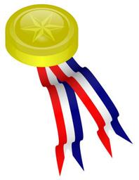 Keywords: medal ribbon award first place red white blue achievement success badge golden