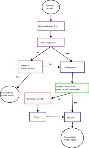 | Keywords: MediaWiki-render-flowchart.svg en Flowchart describing the actions taken to render a page in MediaWiki on Wikimedia's setup Purple nodes are the Squid servers blue are Apache green is memcached red is the database Own Mr Z-man 2009-04-20 SVG flow charts MediaWiki internals |