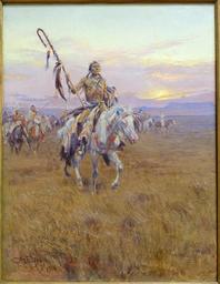 | Keywords: Medicine Man by Charles Marion Russell, 1916, oil on canvas - Blanton Museum of Art - Austin, Texas - DSC08197.jpg en Exhibit in the Blanton Museum of Art - Austin Texas USA This work is old enough so that it is in the public domain 2015-11-15 16 53 53 own Daderot other versions PD-old-70 cc-zero American paintings in the Blanton Museum of Art Fur products Wands Furs in 1916 Paintings of Native Americans by Charles Marion Russell | ||||