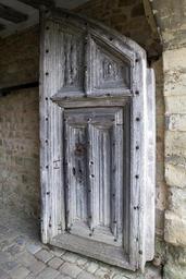 Keywords: medieval oak door iron bolts judas gate stonework paving setts ightham mote kent uk