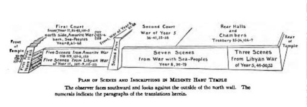 | Keywords: Medinet Habu temple inscriptions Breasted.jpeg Diagram of the inscriptions Medinet Habu temple Drawn by James Breasted in 1906 in Records of Ancient Egypt Vol IV p5 own User oncenawhile 2013-07-30 PD-US PD-old Uploaded from Mobile iOS 1 0 1 Northeast wall of Medinet Habu Temple Mobile uploads lacking EXIF data for camera James Henry Breasted |