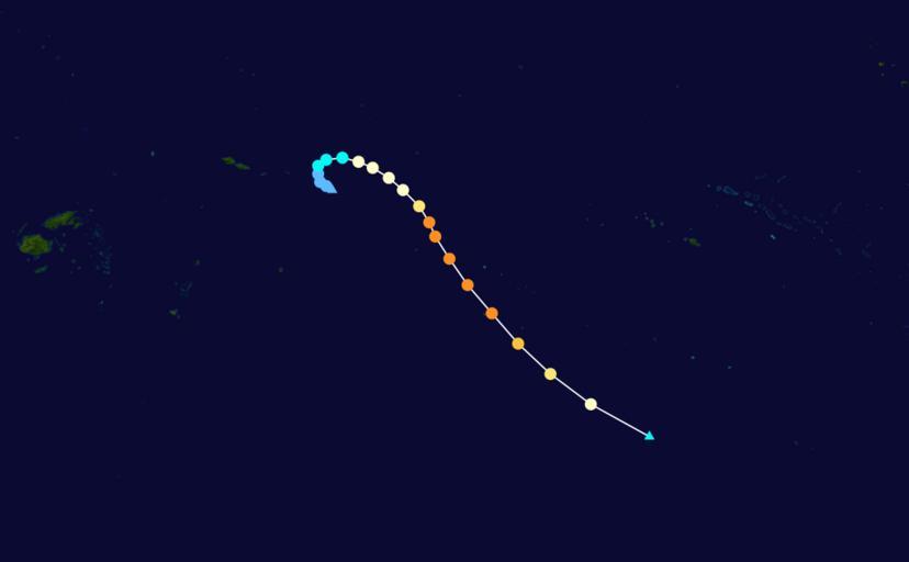 Keywords: Meena 2005 track.png hurricane auto track map 2 Cyclone Meena JTWC Nilfanion February 1 February 8 2005 2004-05 South Pacific cyclone season track maps